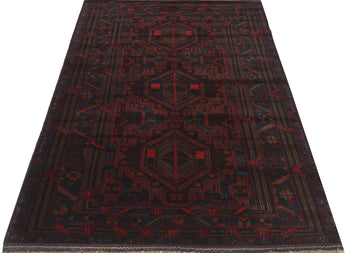 Baluch rugs originate from areas inhabited by the Baluch people, mainly in eastern Iran, western Afghanistan, and southwestern Pakistan. Baluch are known for their nomadic lifestyle, and their rugs reflect this cultural and geographical diversity. Baluch rugs often have intricate geometric patterns and sometimes stylized motifs that represent nature, such as flowers and animals. Common patterns include guls and octagons. Typical colors include deep red, blue, and brown, often combined with white and black accents to create contrast. These rugs are usually hand-woven with wool on a cotton base, giving them both durability and softness. Wool is the most common material used, but sometimes goat hair or silk is also used. Traditionally, these rugs are woven by hand on horizontal or vertical looms, a process that can take several months depending on the size and complexity of the rug. Baluch rugs were primarily used as floor coverings in nomadic tents, but today they are also used as decorative wall hangings and sometimes as prayer mats. Many of the patterns and colors have symbolic meanings, such as protective amulets or symbols of prosperity and fertility. Baluch rugs are not only practical items but also works of art that tell a rich story about the people and cultures that created them.