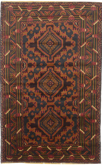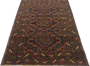 Baluch rugs originate from areas inhabited by the Baluch people, mainly in eastern Iran, western Afghanistan, and southwestern Pakistan. Baluch are known for their nomadic lifestyle, and their rugs reflect this cultural and geographical diversity. Baluch rugs often have intricate geometric patterns and sometimes stylized motifs that represent nature, such as flowers and animals. Common patterns include guls and octagons. Typical colors include deep red, blue, and brown, often combined with white and black accents to create contrast. These rugs are usually hand-woven with wool on a cotton base, giving them both durability and softness. Wool is the most common material used, but sometimes goat hair or silk is also used. Traditionally, these rugs are woven by hand on horizontal or vertical looms, a process that can take several months depending on the size and complexity of the rug. Baluch rugs were primarily used as floor coverings in nomadic tents, but today they are also used as decorative wall hangings and sometimes as prayer mats. Many of the patterns and colors have symbolic meanings, such as protective amulets or symbols of prosperity and fertility. Baluch rugs are not only practical items but also works of art that tell a rich story about the people and cultures that created them.