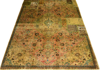 Explore Unique Elegance with Our Hand-Knotted Patchwork Vintage Rug. Give your space a touch of avant-garde with our exclusive hand-knotted rug, a rare combination of patchwork and vintage styles. This rug offers not only an artistic expression but also a fusion of oriental tradition with modern design, perfect for highlighting your unique style. Our rug is created by joining various oriental rugs into a harmonious whole. Each piece is carefully selected and joined to create a unique pattern and a dynamic visual effect. Made from high-quality wool and cotton in tight knots, our rug offers not only a durable structure but also a soft and comfortable feel underfoot. With a perfect balance between the natural warmth of wool and the softness of cotton, our rug provides a luxurious and seductive feel to your space. Our rug features a modern color palette that harmoniously blends earthy tones with vivid accent colors, bringing life and energy to every room. Ideal for creating a modern and avant-garde atmosphere in both homes and offices, it combines traditional oriental style with contemporary design principles. Available in various sizes and can be customized to meet your specific needs, ensuring a perfect fit and style in every room and decor. Experience the beauty and uniqueness of our hand-knotted patchwork vintage rug, a tailored combination of tradition and modernity. Perfect for creating an eclectic and sophisticated atmosphere that reflects your individual style and taste.