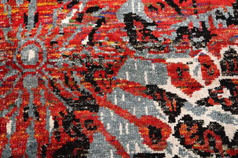 A hand-knotted rug from Varanasi in India, made from bamboo silk and cotton, featuring an advanced and modern design that is perfect for home or office settings. Discover Modern Elegance with Our Hand-Knotted Rug from Varanasi. Create an avant-garde atmosphere with our exclusive hand-knotted rug from Varanasi, India. This rug is not just a work of art but a subtle statement of style and sophistication, ideal for modern homes and office environments. Our rug offers an avant-garde design that stands out from traditional oriental rugs. With high contrast in colors and a unique pattern, each rug is a unique piece of art that enhances modern decor. Each rug is skillfully hand-knotted in Varanasi, known for its rich craftsmanship tradition. The low knot density provides a light and airy feel while the durable bamboo silk and cotton ensure long-lasting quality and comfort. Made from high-quality bamboo silk and cotton, our rug offers a silky feel and a beautiful sheen that elevates any room. With a bold color palette that includes high contrast, our rug offers a vibrant and modern feel that instantly enhances your space. Perfect for creating a modern and avant-garde atmosphere in homes, offices, or other commercial environments. Available in various sizes and can be customized to meet your specific needs to ensure a perfect fit and style in every room. Let our hand-knotted rug from Varanasi become the focal point of your decor, with its advanced design, high-quality materials, and unique artistic value. Experience modern elegance and functional beauty with every step on our exclusive rug from Varanasi.