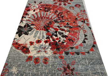 A hand-knotted rug from Varanasi in India, made from bamboo silk and cotton, featuring an advanced and modern design that is perfect for home or office settings. Discover Modern Elegance with Our Hand-Knotted Rug from Varanasi. Create an avant-garde atmosphere with our exclusive hand-knotted rug from Varanasi, India. This rug is not just a work of art but a subtle statement of style and sophistication, ideal for modern homes and office environments. Our rug offers an avant-garde design that stands out from traditional oriental rugs. With high contrast in colors and a unique pattern, each rug is a unique piece of art that enhances modern decor. Each rug is skillfully hand-knotted in Varanasi, known for its rich craftsmanship tradition. The low knot density provides a light and airy feel while the durable bamboo silk and cotton ensure long-lasting quality and comfort. Made from high-quality bamboo silk and cotton, our rug offers a silky feel and a beautiful sheen that elevates any room. With a bold color palette that includes high contrast, our rug offers a vibrant and modern feel that instantly enhances your space. Perfect for creating a modern and avant-garde atmosphere in homes, offices, or other commercial environments. Available in various sizes and can be customized to meet your specific needs to ensure a perfect fit and style in every room. Let our hand-knotted rug from Varanasi become the focal point of your decor, with its advanced design, high-quality materials, and unique artistic value. Experience modern elegance and functional beauty with every step on our exclusive rug from Varanasi.