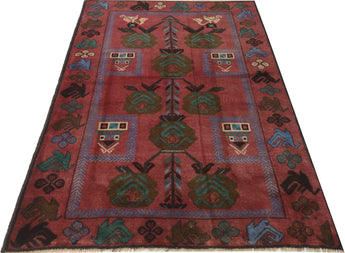 Baluch rugs originate from areas inhabited by the Baluch people, mainly in eastern Iran, western Afghanistan, and southwestern Pakistan. Baluch are known for their nomadic lifestyle, and their rugs reflect this cultural and geographical diversity. Baluch rugs often have intricate geometric patterns and sometimes stylized motifs that represent nature, such as flowers and animals. Common patterns include guls and octagons. Typical colors include deep red, blue, and brown, often combined with white and black accents to create contrast. These rugs are usually hand-woven with wool on a cotton base, giving them both durability and softness. Wool is the most common material used, but sometimes goat hair or silk is also used. Traditionally, these rugs are woven by hand on horizontal or vertical looms, a process that can take several months depending on the size and complexity of the rug. Baluch rugs were primarily used as floor coverings in nomadic tents, but today they are also used as decorative wall hangings and sometimes as prayer mats. Many of the patterns and colors have symbolic meanings, such as protective amulets or symbols of prosperity and fertility. Baluch rugs are not only practical items but also works of art that tell a rich story about the people and cultures that created them.