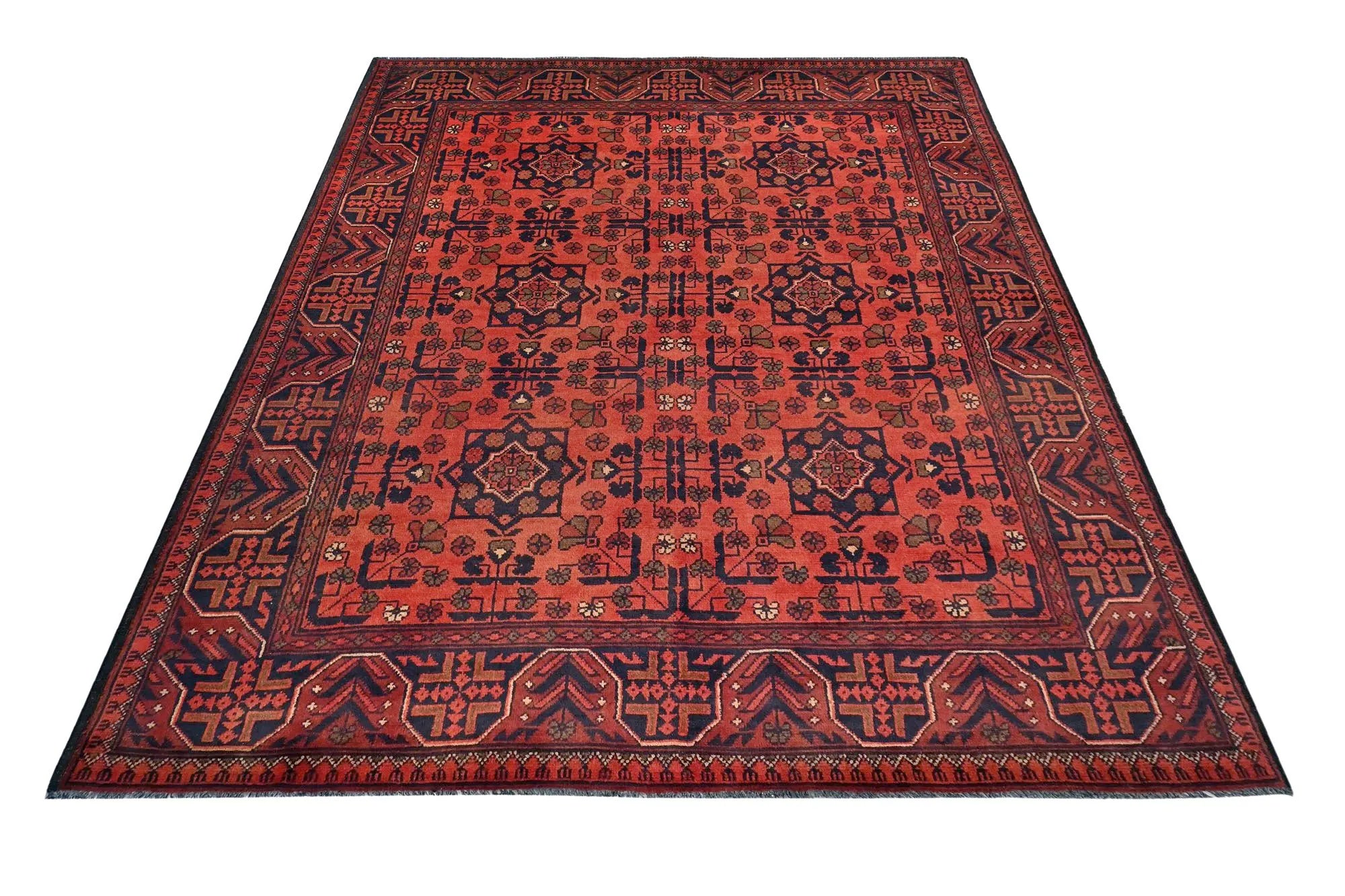 Traditional Afghan rugs are known for their rich history and skilled craftsmanship. These rugs have a long tradition that spans centuries and form an integral part of Afghanistan's cultural heritage. Traditional Afghan rugs are often characterized by geometric patterns and bold colors, and are usually handmade by local artists using traditional methods and materials. The wool used is typically of high quality, which gives the rugs a unique feel and durability. The patterns on these rugs can vary depending on the region and ethnic group that produces them. For e x ample, you might find rugs from different parts of Afghanistan, such as Herat, Kabul, Mazar-i-Sharif, and each region may have its own distinctive styles and patterns. Although traditional Afghan rugs are often woven to be used as floor coverings, they have also become popular as decorative elements in homes and offices around the world thanks to their beauty and distinctive appearance.