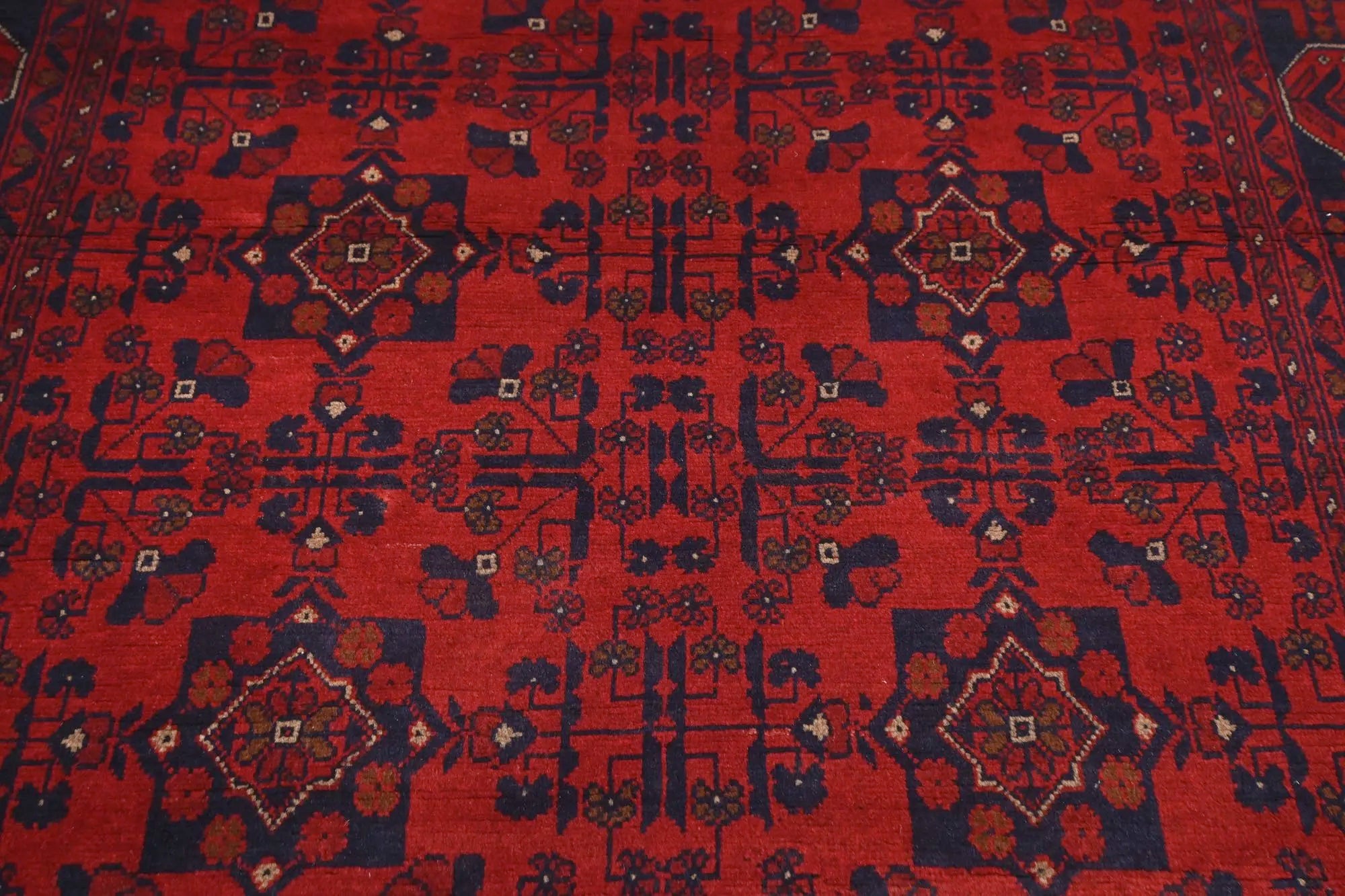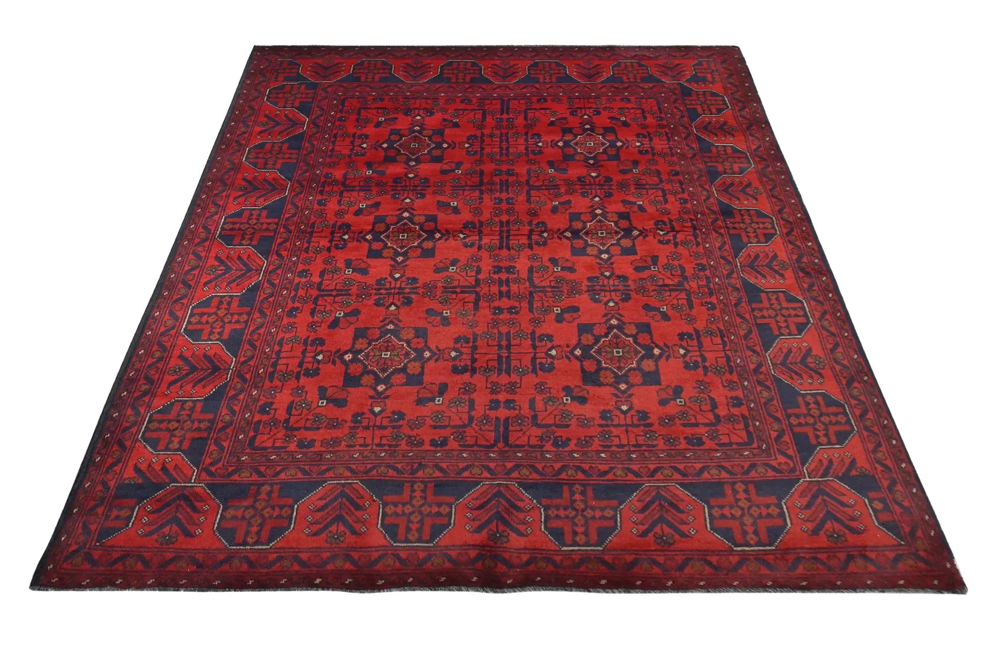Traditional Afghan rugs are known for their rich history and skilled craftsmanship. These rugs have a long tradition that spans centuries and form an integral part of Afghanistan's cultural heritage. Traditional Afghan rugs are often characterized by geometric patterns and bold colors, and are usually handmade by local artists using traditional methods and materials. The wool used is typically of high quality, which gives the rugs a unique feel and durability. The patterns on these rugs can vary depending on the region and ethnic group that produces them. For e x ample, you might find rugs from different parts of Afghanistan, such as Herat, Kabul, Mazar-i-Sharif, and each region may have its own distinctive styles and patterns. Although traditional Afghan rugs are often woven to be used as floor coverings, they have also become popular as decorative elements in homes and offices around the world thanks to their beauty and distinctive appearance.