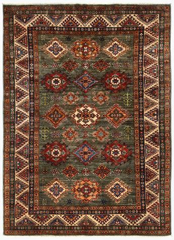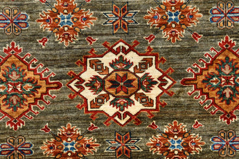 Kazak rugs from Afghanistan are well-known and appreciated for their rich history, unique design, and high quality. They are a part of Afghanistan's rich textile tradition and hold a special place in the hearts of rug enthusiasts worldwide. Kazak rugs (or Qazak) have their origins in the Caucasus region, but they are also popular and made in Afghanistan. Originally from the Caucasus regions, they have influenced and become a significant part of the rug-weaving tradition in Afghanistan. These rugs have a long history spanning centuries. Traditionally made by nomadic tribes and village communities, they carry a rich cultural heritage and unique stories. Kazak rugs are known for their geometric patterns and bold design, often featuring large medallions in the center, repeated smaller geometric shapes, and sometimes stylized flowers and animals. The patterns can range from simple to very complex and detailed. Typical colors include deep reds, blues, and greens, often combined with white and gold accents. Many of the patterns and symbols on Kazak rugs have traditional and cultural meanings, often related to protection, strength, and luck. Thanks to the dense knotting and high-quality wool, Kazak rugs are extremely durable and can last for many years, even under heavy use. They are ideal for use in various rooms, from living rooms to bedrooms, and can also be used as wall hangings. Their timeless design makes them suitable for both traditional and modern interiors.