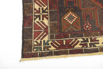 Baluch rugs originate from areas inhabited by the Baluch people, mainly in eastern Iran, western Afghanistan, and southwestern Pakistan. Baluch are known for their nomadic lifestyle, and their rugs reflect this cultural and geographical diversity. Baluch rugs often have intricate geometric patterns and sometimes stylized motifs that represent nature, such as flowers and animals. Common patterns include guls and octagons. Typical colors include deep red, blue, and brown, often combined with white and black accents to create contrast. These rugs are usually hand-woven with wool on a cotton base, giving them both durability and softness. Wool is the most common material used, but sometimes goat hair or silk is also used. Traditionally, these rugs are woven by hand on horizontal or vertical looms, a process that can take several months depending on the size and complexity of the rug. Baluch rugs were primarily used as floor coverings in nomadic tents, but today they are also used as decorative wall hangings and sometimes as prayer mats. Many of the patterns and colors have symbolic meanings, such as protective amulets or symbols of prosperity and fertility. Baluch rugs are not only practical items but also works of art that tell a rich story about the people and cultures that created them.