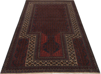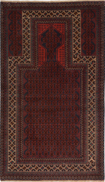Baluch rugs originate from areas inhabited by the Baluch people, mainly in eastern Iran, western Afghanistan, and southwestern Pakistan. Baluch are known for their nomadic lifestyle, and their rugs reflect this cultural and geographical diversity. Baluch rugs often have intricate geometric patterns and sometimes stylized motifs that represent nature, such as flowers and animals. Common patterns include guls and octagons. Typical colors include deep red, blue, and brown, often combined with white and black accents to create contrast. These rugs are usually hand-woven with wool on a cotton base, giving them both durability and softness. Wool is the most common material used, but sometimes goat hair or silk is also used. Traditionally, these rugs are woven by hand on horizontal or vertical looms, a process that can take several months depending on the size and complexity of the rug. Baluch rugs were primarily used as floor coverings in nomadic tents, but today they are also used as decorative wall hangings and sometimes as prayer mats. Many of the patterns and colors have symbolic meanings, such as protective amulets or symbols of prosperity and fertility. Baluch rugs are not only practical items but also works of art that tell a rich story about the people and cultures that created them.