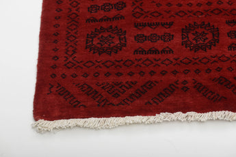 Bokhara carpets from Pakistan are known for their elegant and classic patterns, inspired by traditional Central Asian design. They are named after the city of Bokhara (now Bukhara) in Uzbekistan, although those manufactured in Pakistan have developed their own unique style and feel. Bokhara carpets from Pakistan are primarily produced in the Punjab province and other parts of the country. Pakistan is known for its rich tradition of carpet weaving and has become one of the leading exporters of hand-knotted carpets. The design of Bokhara carpets originates from the Turkmen nomadic tribe Tekke, but Pakistani versions have adapted and developed these patterns to create their own distinct style. This adaptation has led to a unique and recognized variant of Bokhara carpets. Bokhara carpets are characterized by their typical geometric patterns with repeated octagons or guls, surrounded by smaller geometric elements. There are also variations with more floral or stylized patterns. Traditional Bokhara carpets are often in deep red, wine red, or dark blue, but modern variants may also be found in lighter and more varied colors such as beige, gray, and green. Bokhara carpets from Pakistan are usually made of fine wool which is soft and durable. They may also have elements of silk to enhance the gloss and softness. The warp and weft are usually made of cotton, which provides stability and structure. These carpets are hand-knotted with a medium to high knot density, which gives them a dense and durable construction. The knotting technique in Pakistan is known for its precision and quality. These carpets are very versatile and can be used in various environments, from traditional to modern. They are also popular as art objects due to their aesthetic and artistic value.