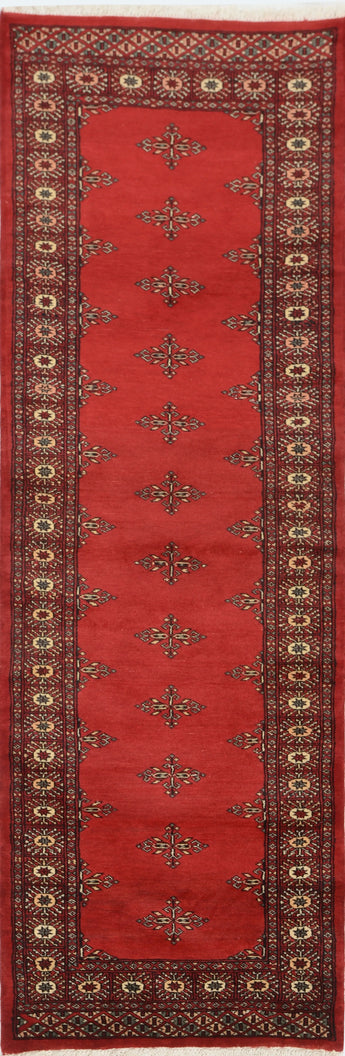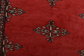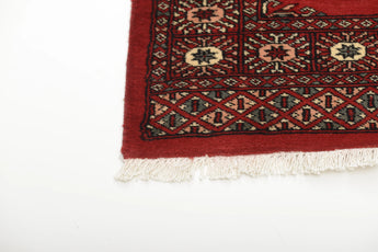 Bokhara carpets from Pakistan are known for their elegant and classic patterns, inspired by traditional Central Asian design. They are named after the city of Bokhara (now Bukhara) in Uzbekistan, although those manufactured in Pakistan have developed their own unique style and feel. Bokhara carpets from Pakistan are primarily produced in the Punjab province and other parts of the country. Pakistan is known for its rich tradition of carpet weaving and has become one of the leading exporters of hand-knotted carpets. The design of Bokhara carpets originates from the Turkmen nomadic tribe Tekke, but Pakistani versions have adapted and developed these patterns to create their own distinct style. This adaptation has led to a unique and recognized variant of Bokhara carpets. Bokhara carpets are characterized by their typical geometric patterns with repeated octagons or guls, surrounded by smaller geometric elements. There are also variations with more floral or stylized patterns. Traditional Bokhara carpets are often in deep red, wine red, or dark blue, but modern variants may also be found in lighter and more varied colors such as beige, gray, and green. Bokhara carpets from Pakistan are usually made of fine wool which is soft and durable. They may also have elements of silk to enhance the gloss and softness. The warp and weft are usually made of cotton, which provides stability and structure. These carpets are hand-knotted with a medium to high knot density, which gives them a dense and durable construction. The knotting technique in Pakistan is known for its precision and quality. These carpets are very versatile and can be used in various environments, from traditional to modern. They are also popular as art objects due to their aesthetic and artistic value.