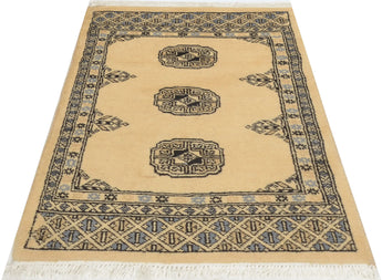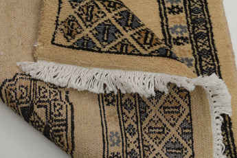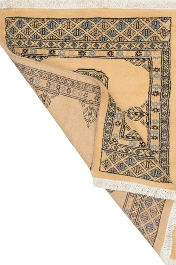 Bokhara carpets from Pakistan are known for their elegant and classic patterns, inspired by traditional Central Asian design. They are named after the city of Bokhara (now Bukhara) in Uzbekistan, although those manufactured in Pakistan have developed their own unique style and feel. Bokhara carpets from Pakistan are primarily produced in the Punjab province and other parts of the country. Pakistan is known for its rich tradition of carpet weaving and has become one of the leading exporters of hand-knotted carpets. The design of Bokhara carpets originates from the Turkmen nomadic tribe Tekke, but Pakistani versions have adapted and developed these patterns to create their own distinct style. This adaptation has led to a unique and recognized variant of Bokhara carpets. Bokhara carpets are characterized by their typical geometric patterns with repeated octagons or guls, surrounded by smaller geometric elements. There are also variations with more floral or stylized patterns. Traditional Bokhara carpets are often in deep red, wine red, or dark blue, but modern variants may also be found in lighter and more varied colors such as beige, gray, and green. Bokhara carpets from Pakistan are usually made of fine wool which is soft and durable. They may also have elements of silk to enhance the gloss and softness. The warp and weft are usually made of cotton, which provides stability and structure. These carpets are hand-knotted with a medium to high knot density, which gives them a dense and durable construction. The knotting technique in Pakistan is known for its precision and quality. These carpets are very versatile and can be used in various environments, from traditional to modern. They are also popular as art objects due to their aesthetic and artistic value.