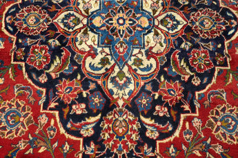 Kashan (or Keshan) rugs are truly an example of the finest in Persian rug artistry. They offer a combination of beauty, durability, and cultural value. If you're considering purchasing a Kashan rug, you can be sure that you're investing in a piece of Iranian culture and history that will bring joy and beauty for many years to come. Kashan rugs are hand-knotted with great precision and adhere to traditional weaving techniques that have developed over centuries. The rugs are known for their high knot density and intricate details. Kashan rugs often feature complex patterns including large central medallions, flowers, arabesques, and stylized plant motifs. The patterns are often symmetrical and have a harmonious design that reflects traditional Persian art. The most commonly used colors in Kashan rugs are red, blue, ivory, and beige. These colors are often combined to create a rich and contrasting palette. The colors are traditionally made with natural dyes, giving them their deep and lasting appearance. Most Kashan rugs are made from high-quality wool, which provides a soft and durable surface. Some of the more exclusive ones may also contain silk to add extra luster and richness in detail. The base of the rugs is usually made of cotton, which provides stability and structure to the rug. Kashan rugs are known for their high knot density, which makes them dense and durable. This high knot density allows for the creation of very detailed patterns and contributes to the rug's longevity. Kashan rugs are available in a variety of sizes, from small prayer rugs to large room-sized rugs. They are popular both for home use and as decorative items in public spaces. Kashan rugs are an important part of Iran's cultural heritage and represent a long tradition of artistic expression and craftsmanship. They are often an expression of local culture and aesthetics and are considered a form of artwork. Many Kashan rugs have historically been made for royal courts and wealthy merchants, which marks them as symbols of luxury and status. They are still highly sought after both as collectibles and for decoration in exclusive settings. Kashan rugs are often expensive due to their high quality and aesthetic value.