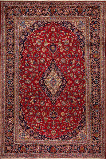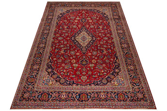 Kashan (or Keshan) rugs are truly an example of the finest in Persian rug artistry. They offer a combination of beauty, durability, and cultural value. If you're considering purchasing a Kashan rug, you can be sure that you're investing in a piece of Iranian culture and history that will bring joy and beauty for many years to come. Kashan rugs are hand-knotted with great precision and adhere to traditional weaving techniques that have developed over centuries. The rugs are known for their high knot density and intricate details. Kashan rugs often feature complex patterns including large central medallions, flowers, arabesques, and stylized plant motifs. The patterns are often symmetrical and have a harmonious design that reflects traditional Persian art. The most commonly used colors in Kashan rugs are red, blue, ivory, and beige. These colors are often combined to create a rich and contrasting palette. The colors are traditionally made with natural dyes, giving them their deep and lasting appearance. Most Kashan rugs are made from high-quality wool, which provides a soft and durable surface. Some of the more exclusive ones may also contain silk to add extra luster and richness in detail. The base of the rugs is usually made of cotton, which provides stability and structure to the rug. Kashan rugs are known for their high knot density, which makes them dense and durable. This high knot density allows for the creation of very detailed patterns and contributes to the rug's longevity. Kashan rugs are available in a variety of sizes, from small prayer rugs to large room-sized rugs. They are popular both for home use and as decorative items in public spaces. Kashan rugs are an important part of Iran's cultural heritage and represent a long tradition of artistic expression and craftsmanship. They are often an expression of local culture and aesthetics and are considered a form of artwork. Many Kashan rugs have historically been made for royal courts and wealthy merchants, which marks them as symbols of luxury and status. They are still highly sought after both as collectibles and for decoration in exclusive settings. Kashan rugs are often expensive due to their high quality and aesthetic value.