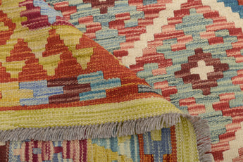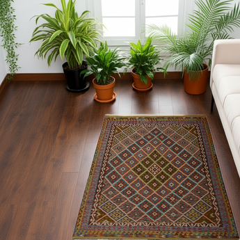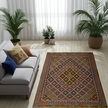 A Masterpiece of Afghan Craftsmanship with Caucasian Inspiration. Kelim Chobi rugs are a brilliant example of traditional Afghan craftsmanship, combining both quality and aesthetic finesse. These rugs are uniquely handwoven in Afghanistan and carry a rich history of craftsmanship, where traditional techniques have been passed down through generations. What makes Kelim Chobi rugs particularly remarkable is their distinct design, heavily influenced by Caucasian patterns. The geometric shapes and symmetrical patterns, typical of Caucasian rugs, give Kelim Chobi rugs their unique and timeless character. The colors used in Kelim Chobi rugs are often subdued and natural, providing them with an elegant and sophisticated look. These colors are derived from natural dyes, which not only provide a durable and authentic color palette but also reflect a deep respect for nature and traditional methods. Each Kelim Chobi rug is handwoven with the utmost care and precision, ensuring high quality and durability. The rugs are flat-woven, giving them a smooth surface and making them both practical and easy to maintain. Thanks to their combination of Afghan craftsmanship and Caucasian design, Kelim Chobi rugs are a popular choice for those looking for a beautiful and timeless decorative element that can enhance any room. These rugs are not only practical floor coverings but also artworks that tell a story of tradition and culture. If you are looking for a rug that combines traditional craftsmanship with stylish design, Kelim Chobi rugs are an excellent choice. Their timeless beauty and durable quality make them a perfect investment for your home.