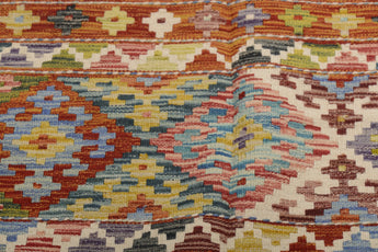 A Masterpiece of Afghan Craftsmanship with Caucasian Inspiration. Kelim Chobi rugs are a brilliant example of traditional Afghan craftsmanship, combining both quality and aesthetic finesse. These rugs are uniquely handwoven in Afghanistan and carry a rich history of craftsmanship, where traditional techniques have been passed down through generations. What makes Kelim Chobi rugs particularly remarkable is their distinct design, heavily influenced by Caucasian patterns. The geometric shapes and symmetrical patterns, typical of Caucasian rugs, give Kelim Chobi rugs their unique and timeless character. The colors used in Kelim Chobi rugs are often subdued and natural, providing them with an elegant and sophisticated look. These colors are derived from natural dyes, which not only provide a durable and authentic color palette but also reflect a deep respect for nature and traditional methods. Each Kelim Chobi rug is handwoven with the utmost care and precision, ensuring high quality and durability. The rugs are flat-woven, giving them a smooth surface and making them both practical and easy to maintain. Thanks to their combination of Afghan craftsmanship and Caucasian design, Kelim Chobi rugs are a popular choice for those looking for a beautiful and timeless decorative element that can enhance any room. These rugs are not only practical floor coverings but also artworks that tell a story of tradition and culture. If you are looking for a rug that combines traditional craftsmanship with stylish design, Kelim Chobi rugs are an excellent choice. Their timeless beauty and durable quality make them a perfect investment for your home.