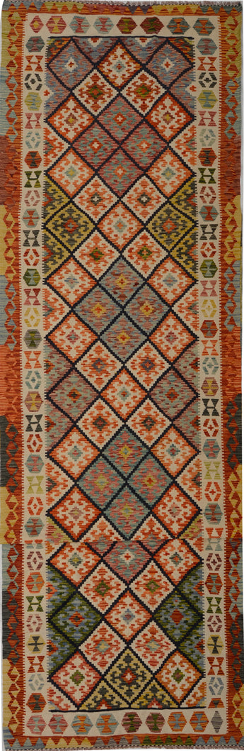 A Masterpiece of Afghan Craftsmanship with Caucasian Inspiration. Kelim Chobi rugs are a brilliant example of traditional Afghan craftsmanship, combining both quality and aesthetic finesse. These rugs are uniquely handwoven in Afghanistan and carry a rich history of craftsmanship, where traditional techniques have been passed down through generations. What makes Kelim Chobi rugs particularly remarkable is their distinct design, heavily influenced by Caucasian patterns. The geometric shapes and symmetrical patterns, typical of Caucasian rugs, give Kelim Chobi rugs their unique and timeless character. The colors used in Kelim Chobi rugs are often subdued and natural, providing them with an elegant and sophisticated look. These colors are derived from natural dyes, which not only provide a durable and authentic color palette but also reflect a deep respect for nature and traditional methods. Each Kelim Chobi rug is handwoven with the utmost care and precision, ensuring high quality and durability. The rugs are flat-woven, giving them a smooth surface and making them both practical and easy to maintain. Thanks to their combination of Afghan craftsmanship and Caucasian design, Kelim Chobi rugs are a popular choice for those looking for a beautiful and timeless decorative element that can enhance any room. These rugs are not only practical floor coverings but also artworks that tell a story of tradition and culture. If you are looking for a rug that combines traditional craftsmanship with stylish design, Kelim Chobi rugs are an excellent choice. Their timeless beauty and durable quality make them a perfect investment for your home.