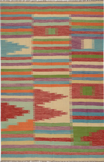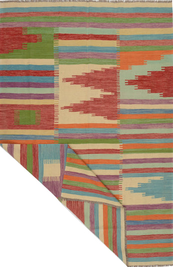 A Masterpiece of Afghan Craftsmanship with Caucasian Inspiration. Kelim Chobi rugs are a brilliant example of traditional Afghan craftsmanship, combining both quality and aesthetic finesse. These rugs are uniquely handwoven in Afghanistan and carry a rich history of craftsmanship, where traditional techniques have been passed down through generations. What makes Kelim Chobi rugs particularly remarkable is their distinct design, heavily influenced by Caucasian patterns. The geometric shapes and symmetrical patterns, typical of Caucasian rugs, give Kelim Chobi rugs their unique and timeless character. The colors used in Kelim Chobi rugs are often subdued and natural, providing them with an elegant and sophisticated look. These colors are derived from natural dyes, which not only provide a durable and authentic color palette but also reflect a deep respect for nature and traditional methods. Each Kelim Chobi rug is handwoven with the utmost care and precision, ensuring high quality and durability. The rugs are flat-woven, giving them a smooth surface and making them both practical and easy to maintain. Thanks to their combination of Afghan craftsmanship and Caucasian design, Kelim Chobi rugs are a popular choice for those looking for a beautiful and timeless decorative element that can enhance any room. These rugs are not only practical floor coverings but also artworks that tell a story of tradition and culture. If you are looking for a rug that combines traditional craftsmanship with stylish design, Kelim Chobi rugs are an excellent choice. Their timeless beauty and durable quality make them a perfect investment for your home.