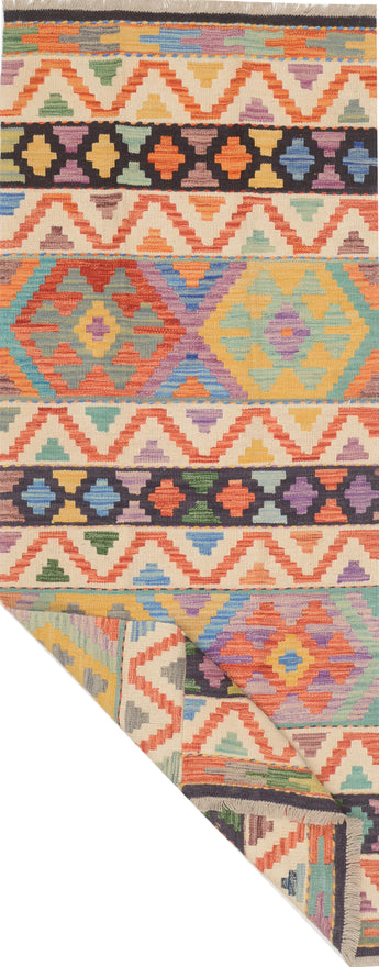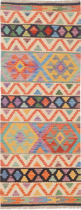 A Masterpiece of Afghan Craftsmanship with Caucasian Inspiration. Kelim Chobi rugs are a brilliant example of traditional Afghan craftsmanship, combining both quality and aesthetic finesse. These rugs are uniquely handwoven in Afghanistan and carry a rich history of craftsmanship, where traditional techniques have been passed down through generations. What makes Kelim Chobi rugs particularly remarkable is their distinct design, heavily influenced by Caucasian patterns. The geometric shapes and symmetrical patterns, typical of Caucasian rugs, give Kelim Chobi rugs their unique and timeless character. The colors used in Kelim Chobi rugs are often subdued and natural, providing them with an elegant and sophisticated look. These colors are derived from natural dyes, which not only provide a durable and authentic color palette but also reflect a deep respect for nature and traditional methods. Each Kelim Chobi rug is handwoven with the utmost care and precision, ensuring high quality and durability. The rugs are flat-woven, giving them a smooth surface and making them both practical and easy to maintain. Thanks to their combination of Afghan craftsmanship and Caucasian design, Kelim Chobi rugs are a popular choice for those looking for a beautiful and timeless decorative element that can enhance any room. These rugs are not only practical floor coverings but also artworks that tell a story of tradition and culture. If you are looking for a rug that combines traditional craftsmanship with stylish design, Kelim Chobi rugs are an excellent choice. Their timeless beauty and durable quality make them a perfect investment for your home.