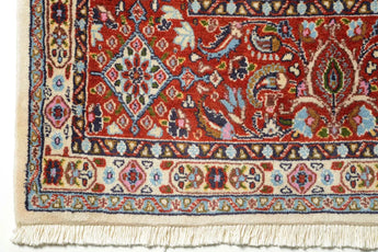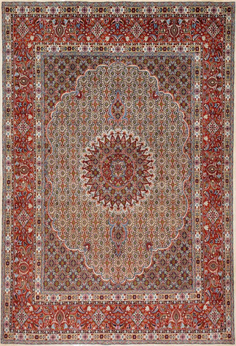 Moud rugs, also known as Mood rugs, are hand-knotted rugs traditionally made in the city of Moud (also spelled Mood) in the Khorasan province of northeastern Persia. These rugs are renowned for their high quality and skilled craftsmanship, which has made them popular both in Iran and internationally. Moud rugs are typically woven from high-quality wool from sheep grazing in the Moud area. The wool is known for its softness and durability. Some Moud rugs may also contain silk threads, especially in the details of the pattern or to add extra sheen and life to the rug. The rugs are hand-knotted using traditional techniques that have been passed down from generation to generation in the area. Typical patterns on Moud rugs include flowers, plants, and geometric figures. Rosettes and medallions are also common in the design. The color palette is often rich and includes traditional colors such as red, blue, green, and beige. Moud rugs are known for their elegance and fine craftsmanship. They possess a classic Oriental style that fits both traditional and modern home environments. The rugs are usually medium to small in size and work well in living rooms, bedrooms, and other spaces. On the international market, Moud rugs are sought after for their high quality and artistic value. They are often seen as investment pieces due to their durability and beauty.