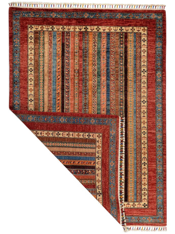 Shal rugs from Afghanistan are a type of traditional textile often used as bags or saddlebags by nomadic tribes in the region. These rugs are known for their practical uses and beautiful designs. Originally created for use as pack bags by nomadic people, Shal rugs are often designed with functionality in mind. The patterns on Shal rugs are often colorful, with symbolic motifs representing the tribe's culture and traditions. Typically knotted from wool, Shal rugs are durable and sturdy for nomadic life. The colors in Shal rugs are usually natural, made from plant dyes, giving them a warm and earthy color palette. Typical colors include red, blue, brown, and beige, but there may also be hints of green and yellow. Shal rugs are not only practical but also works of art that tell stories about the tribe's life and culture. Each rug is unique and reflects the weaver's skill and creativity. High-quality materials and craftsmanship make Shal rugs long-lasting and valuable investments for customers.