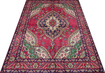 Tabriz rugs are a well-known type of hand-knotted rugs produced in the city of Tabriz, located in the northwest of Iran, in the Azarbaijan province of Persia. These rugs have a long tradition of craftsmanship and are considered some of the finest and most sought-after Persian rugs on the market. Typically made from the finest wool, Tabriz rugs provide a soft and durable surface. Sometimes, they may also incorporate silk threads, particularly in the details of the pattern or to add extra luster to the rug. The production of Tabriz rugs involves a meticulous hand-knotting technique that has been passed down from generation to generation. This traditional craft is crucial for creating the rugs' detailed patterns and high quality. Typical patterns on Tabriz rugs can vary but often include medallions, flowers, arabesques, and geometric figures. The patterns are usually intricate and symmetrical, which lends the rugs an aesthetically pleasing character. The color palette in Tabriz rugs is rich and may include traditional colors such as red, blue, green, beige, and other earthy tones. Known for their elegance, fine craftsmanship, and classic oriental style, Tabriz rugs' versatility makes them suitable for both traditional and modern interior styles. These rugs are usually medium to large in size and suitable for various applications, including living rooms, bedrooms, and formal rooms. Tabriz rugs are highly coveted in the international rug market for their high quality and authentic craftsmanship. They are considered valuable collectibles and investment opportunities due to their beauty and artistic value.