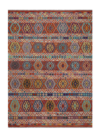 A Masterpiece of Afghan Craftsmanship with Caucasian Inspiration. Kelim Chobi rugs are a brilliant example of traditional Afghan craftsmanship, combining both quality and aesthetic finesse. These rugs are uniquely handwoven in Afghanistan and carry a rich history of craftsmanship, where traditional techniques have been passed down through generations. What makes Kelim Chobi rugs particularly remarkable is their distinct design, heavily influenced by Caucasian patterns. The geometric shapes and symmetrical patterns, typical of Caucasian rugs, give Kelim Chobi rugs their unique and timeless character. The colors used in Kelim Chobi rugs are often subdued and natural, providing them with an elegant and sophisticated look. These colors are derived from natural dyes, which not only provide a durable and authentic color palette but also reflect a deep respect for nature and traditional methods. Each Kelim Chobi rug is handwoven with the utmost care and precision, ensuring high quality and durability. The rugs are flat-woven, giving them a smooth surface and making them both practical and easy to maintain. Thanks to their combination of Afghan craftsmanship and Caucasian design, Kelim Chobi rugs are a popular choice for those looking for a beautiful and timeless decorative element that can enhance any room. These rugs are not only practical floor coverings but also artworks that tell a story of tradition and culture. If you are looking for a rug that combines traditional craftsmanship with stylish design, Kelim Chobi rugs are an excellent choice. Their timeless beauty and durable quality make them a perfect investment for your home.