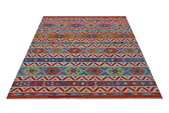 A Masterpiece of Afghan Craftsmanship with Caucasian Inspiration. Kelim Chobi rugs are a brilliant example of traditional Afghan craftsmanship, combining both quality and aesthetic finesse. These rugs are uniquely handwoven in Afghanistan and carry a rich history of craftsmanship, where traditional techniques have been passed down through generations. What makes Kelim Chobi rugs particularly remarkable is their distinct design, heavily influenced by Caucasian patterns. The geometric shapes and symmetrical patterns, typical of Caucasian rugs, give Kelim Chobi rugs their unique and timeless character. The colors used in Kelim Chobi rugs are often subdued and natural, providing them with an elegant and sophisticated look. These colors are derived from natural dyes, which not only provide a durable and authentic color palette but also reflect a deep respect for nature and traditional methods. Each Kelim Chobi rug is handwoven with the utmost care and precision, ensuring high quality and durability. The rugs are flat-woven, giving them a smooth surface and making them both practical and easy to maintain. Thanks to their combination of Afghan craftsmanship and Caucasian design, Kelim Chobi rugs are a popular choice for those looking for a beautiful and timeless decorative element that can enhance any room. These rugs are not only practical floor coverings but also artworks that tell a story of tradition and culture. If you are looking for a rug that combines traditional craftsmanship with stylish design, Kelim Chobi rugs are an excellent choice. Their timeless beauty and durable quality make them a perfect investment for your home.