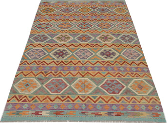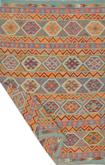A Masterpiece of Afghan Craftsmanship with Caucasian Inspiration. Kelim Chobi rugs are a brilliant example of traditional Afghan craftsmanship, combining both quality and aesthetic finesse. These rugs are uniquely handwoven in Afghanistan and carry a rich history of craftsmanship, where traditional techniques have been passed down through generations. What makes Kelim Chobi rugs particularly remarkable is their distinct design, heavily influenced by Caucasian patterns. The geometric shapes and symmetrical patterns, typical of Caucasian rugs, give Kelim Chobi rugs their unique and timeless character. The colors used in Kelim Chobi rugs are often subdued and natural, providing them with an elegant and sophisticated look. These colors are derived from natural dyes, which not only provide a durable and authentic color palette but also reflect a deep respect for nature and traditional methods. Each Kelim Chobi rug is handwoven with the utmost care and precision, ensuring high quality and durability. The rugs are flat-woven, giving them a smooth surface and making them both practical and easy to maintain. Thanks to their combination of Afghan craftsmanship and Caucasian design, Kelim Chobi rugs are a popular choice for those looking for a beautiful and timeless decorative element that can enhance any room. These rugs are not only practical floor coverings but also artworks that tell a story of tradition and culture. If you are looking for a rug that combines traditional craftsmanship with stylish design, Kelim Chobi rugs are an excellent choice. Their timeless beauty and durable quality make them a perfect investment for your home.