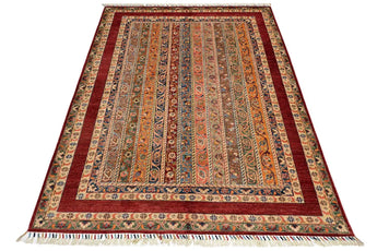 Shal rugs from Afghanistan are a type of traditional textile often used as bags or saddlebags by nomadic tribes in the region. These rugs are known for their practical uses and beautiful designs. Originally created for use as pack bags by nomadic people, Shal rugs are often designed with functionality in mind. The patterns on Shal rugs are often colorful, with symbolic motifs representing the tribe's culture and traditions. Typically knotted from wool, Shal rugs are durable and sturdy for nomadic life. The colors in Shal rugs are usually natural, made from plant dyes, giving them a warm and earthy color palette. Typical colors include red, blue, brown, and beige, but there may also be hints of green and yellow. Shal rugs are not only practical but also works of art that tell stories about the tribe's life and culture. Each rug is unique and reflects the weaver's skill and creativity. High-quality materials and craftsmanship make Shal rugs long-lasting and valuable investments for customers.