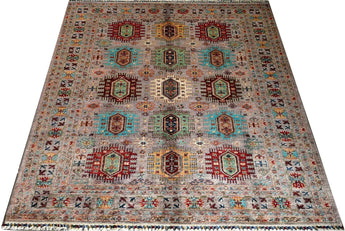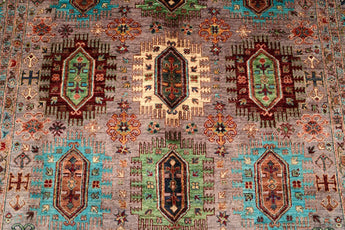 Ghazni rugs are well-known for their high quality and are named after the Ghazni region in Afghanistan, which is famous for its superior wool. This wool is often referred to as Ghazni wool and is prized for its durability and fine texture, making it an excellent material for rug making. Ghazni rugs typically feature intricate tribal patterns that are deeply rooted in the cultural traditions of the region. The designs often include geometric patterns, floral motifs, and highly detailed borders. The color palette usually consists of rich, deep colors such as dark reds, blues, and earthy tones, which are derived from natural dyes. These rugs are typically hand-knotted, a process that requires a high degree of skill and time, contributing to their durability and intricate design details. The high knot density in Ghazni rugs makes them particularly durable, suitable for high traffic areas. Ghazni rugs are appreciated worldwide for their craftsmanship and aesthetic appeal, often seen as both functional art pieces and valuable cultural symbols that reflect the rich heritage of Afghan rug weaving.