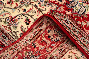 Ghom (sometimes spelled Qom) is a city in central Iran known for producing some of the finest and most exclusive Persian rugs. Here is a detailed overview of Ghom rugs: Ghom is located about 150 km south of Tehran and is an important religious and cultural city in Persia. The city has a long tradition of rug weaving. Ghom rugs are known for their exceptional quality and are usually hand-knotted with very high knot density, which gives them a soft and dense surface. Ghom rugs are known for their complex and beautiful patterns that often include floral arrangements, medallions, and sometimes even figurative motifs such as animals and people. They are often inspired by classic Persian patterns and have a symmetry that is both aesthetically pleasing and harmonious. These rugs use a wide range of colors, including vibrant reds, blues, greens, and gold hues. The dyeing is traditionally done with natural dyes, adding depth and luster to the rugs. One of the most distinctive features of Ghom rugs is that they are often made of silk or a blend of silk and wool. Silk rugs from Ghom are particularly known for their soft, glossy surface and their detailed patterns. There are also rugs that are entirely made of fine wool or a combination of wool and cotton. These rugs are also of very high quality and durable. Ghom rugs come in various sizes, from small prayer rugs to larger room rugs, and they can be rectangular, square, or round. Due to their high quality and craftsmanship, Ghom rugs have a high market value. They are popular among collectors and can be expensive, especially those made of pure silk. Many consider Ghom rugs as investment objects due to their durability and aesthetic value.