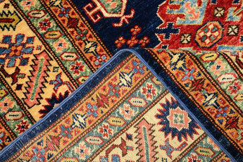 Kazak rugs from Afghanistan are well-known and appreciated for their rich history, unique design, and high quality. They are a part of Afghanistan's rich textile tradition and hold a special place in the hearts of rug enthusiasts worldwide. Kazak rugs (or Qazak) have their origins in the Caucasus region, but they are also popular and made in Afghanistan. Originally from the Caucasus regions, they have influenced and become a significant part of the rug-weaving tradition in Afghanistan. These rugs have a long history spanning centuries. Traditionally made by nomadic tribes and village communities, they carry a rich cultural heritage and unique stories. Kazak rugs are known for their geometric patterns and bold design, often featuring large medallions in the center, repeated smaller geometric shapes, and sometimes stylized flowers and animals. The patterns can range from simple to very complex and detailed. Typical colors include deep reds, blues, and greens, often combined with white and gold accents. Many of the patterns and symbols on Kazak rugs have traditional and cultural meanings, often related to protection, strength, and luck. Thanks to the dense knotting and high-quality wool, Kazak rugs are extremely durable and can last for many years, even under heavy use. They are ideal for use in various rooms, from living rooms to bedrooms, and can also be used as wall hangings. Their timeless design makes them suitable for both traditional and modern interiors.