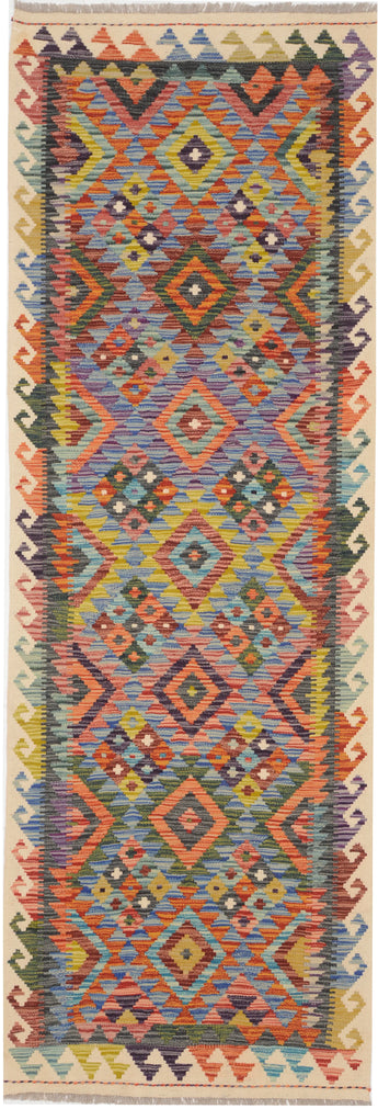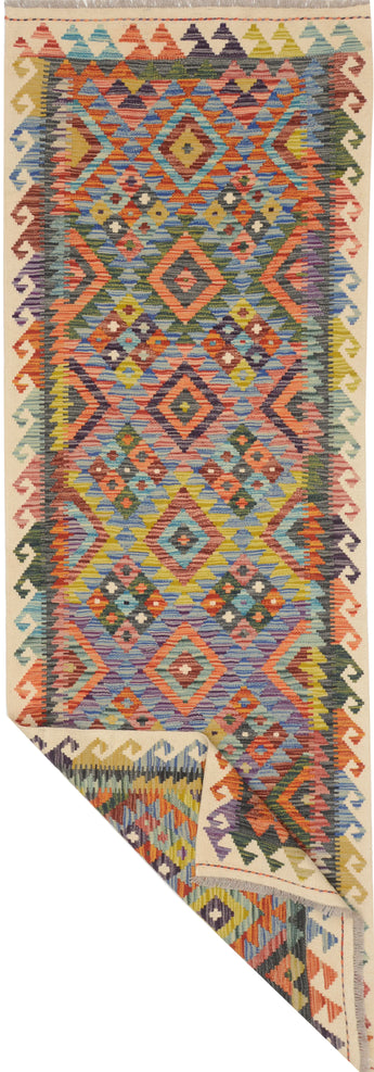 A Masterpiece of Afghan Craftsmanship with Caucasian Inspiration. Kelim Chobi rugs are a brilliant example of traditional Afghan craftsmanship, combining both quality and aesthetic finesse. These rugs are uniquely handwoven in Afghanistan and carry a rich history of craftsmanship, where traditional techniques have been passed down through generations. What makes Kelim Chobi rugs particularly remarkable is their distinct design, heavily influenced by Caucasian patterns. The geometric shapes and symmetrical patterns, typical of Caucasian rugs, give Kelim Chobi rugs their unique and timeless character. The colors used in Kelim Chobi rugs are often subdued and natural, providing them with an elegant and sophisticated look. These colors are derived from natural dyes, which not only provide a durable and authentic color palette but also reflect a deep respect for nature and traditional methods. Each Kelim Chobi rug is handwoven with the utmost care and precision, ensuring high quality and durability. The rugs are flat-woven, giving them a smooth surface and making them both practical and easy to maintain. Thanks to their combination of Afghan craftsmanship and Caucasian design, Kelim Chobi rugs are a popular choice for those looking for a beautiful and timeless decorative element that can enhance any room. These rugs are not only practical floor coverings but also artworks that tell a story of tradition and culture. If you are looking for a rug that combines traditional craftsmanship with stylish design, Kelim Chobi rugs are an excellent choice. Their timeless beauty and durable quality make them a perfect investment for your home.