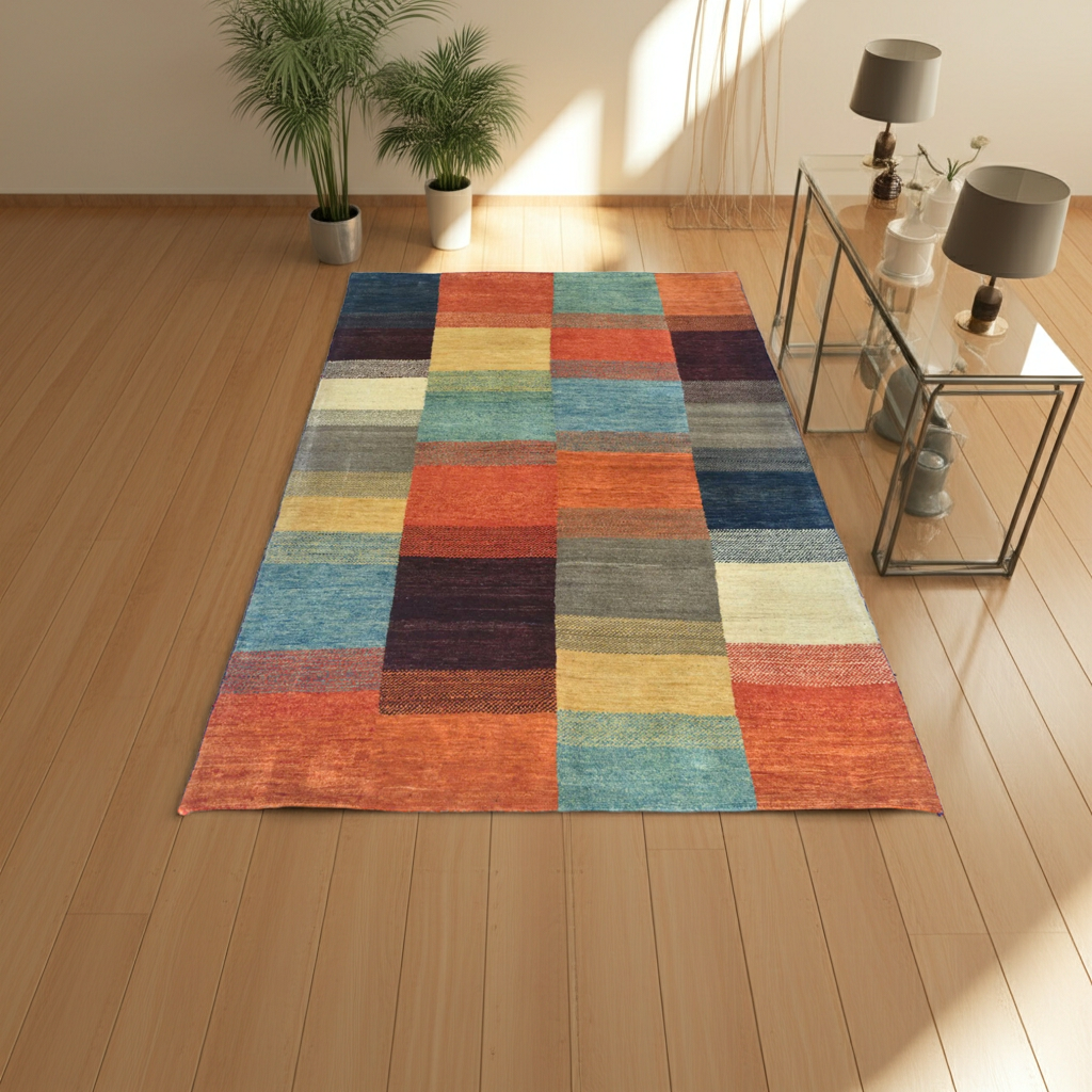 Gabbeh rugs are renowned for their unique charm and authentic craftsmanship. Due to their growing popularity, they are now also produced in Afghanistan, where skilled weavers create them with a denser knot structure and a slightly thinner profile compared to traditional Persian Gabbeh rugs. Despite the lighter construction, the same traditional knotting techniques used in the Persian originals are preserved, ensuring the rugs maintain their authentic character and durability. The result is a beautiful, lighter Gabbeh rug featuring fine detailing, natural colors, and a warm, vibrant appearance that enhances any space.
