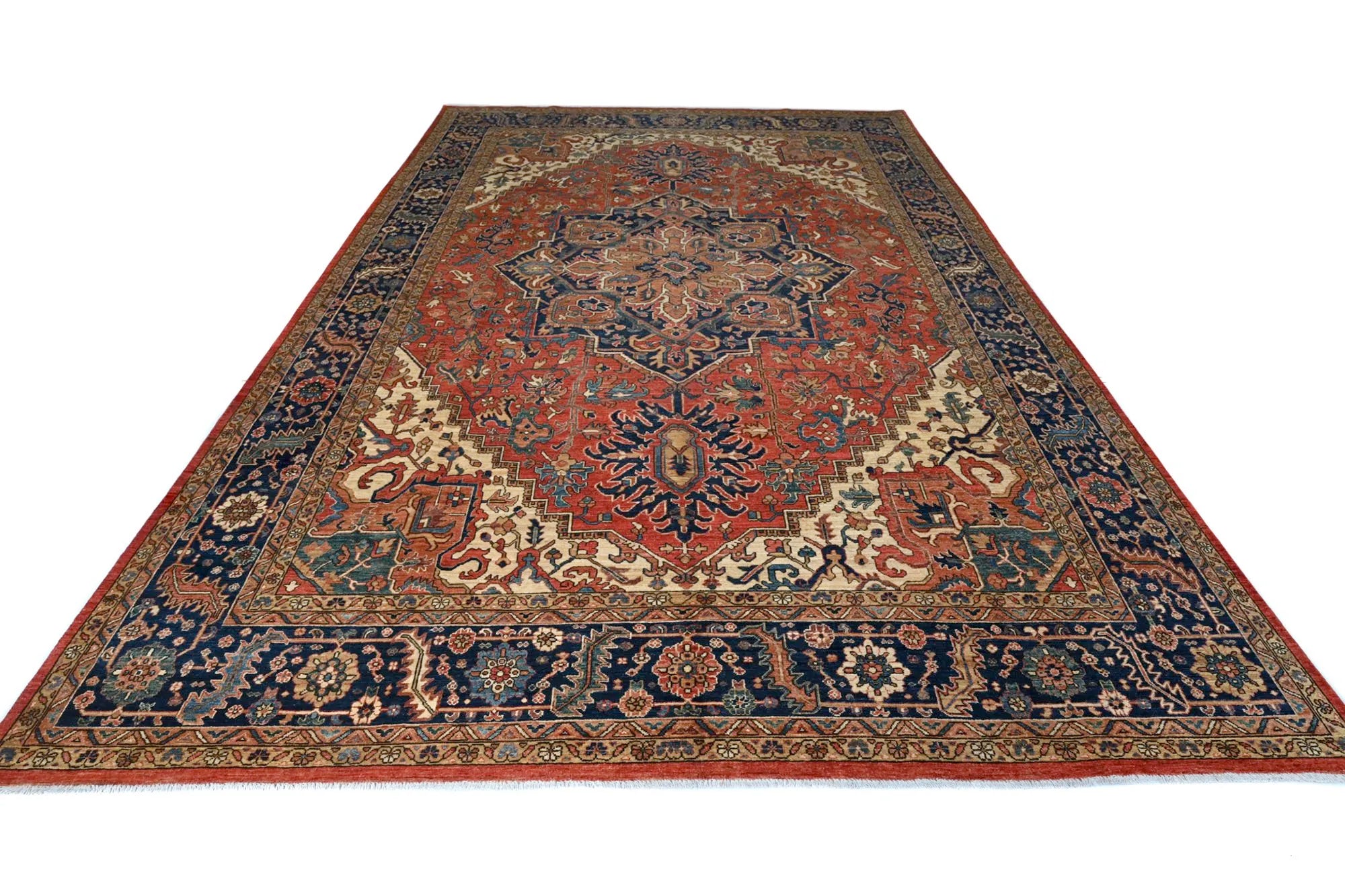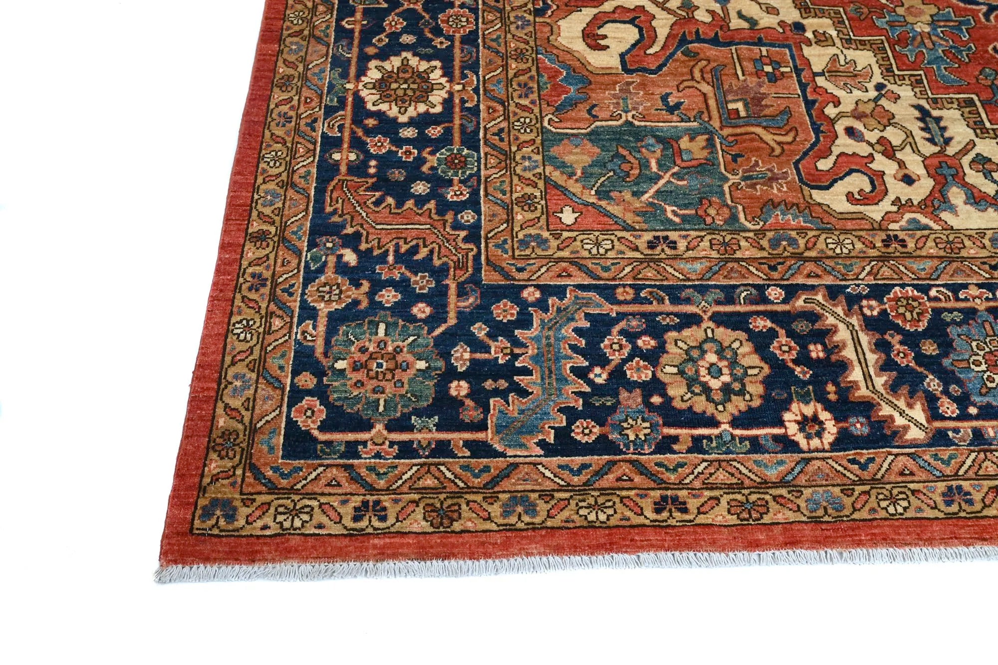 This exclusive rug is inspired by traditional Persian Heriz patterns, reinterpreted in a more modern, softer style with brighter and more uplifting colors. Each piece is hand-knotted in Afghanistan using hand-spun wool and 100% natural vegetable dyes, giving the rug outstanding durability and a beautiful organic sheen. While classic Heriz rugs are known for bold geometric shapes and strong medallion designs, this modern interpretation features a calmer, more contemporary layout that blends effortlessly into both classic and modern interiors. If you're looking for a hand-knotted Heriz rug, a luxury oriental rug, or a rug dyed with authentic vegetable colors, this Afghan-knotted Heriz design is an exceptional choice- a refined artwork that elevates any space.