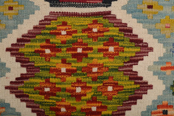 A Masterpiece of Afghan Craftsmanship with Caucasian Inspiration. Kelim Chobi rugs are a brilliant e x ample of traditional Afghan craftsmanship, combining both quality and aesthetic finesse. These rugs are uniquely handwoven in Afghanistan and carry a rich history of craftsmanship, where traditional techniques have been passed down through generations. What makes Kelim Chobi rugs particularly remarkable is their distinct design, heavily influenced by Caucasian patterns. The geometric shapes and symmetrical patterns, typical of Caucasian rugs, give Kelim Chobi rugs their unique and timeless character. The colors used in Kelim Chobi rugs are often subdued and natural, providing them with an elegant and sophisticated look. These colors are derived from natural dyes, which not only provide a durable and authentic color palette but also reflect a deep respect for nature and traditional methods. Each Kelim Chobi rug is handwoven with the utmost care and precision, ensuring high quality and durability. The rugs are flat-woven, giving them a smooth surface and making them both practical and easy to maintain. Thanks to their combination of Afghan craftsmanship and Caucasian design, Kelim Chobi rugs are a popular choice for those looking for a beautiful and timeless decorative element that can enhance any room. These rugs are not only practical floor coverings but also artworks that tell a story of tradition and culture. If you are looking for a rug that combines traditional craftsmanship with stylish design, Kelim Chobi rugs are an e x cellent choice. Their timeless beauty and durable quality make them a perfect investment for your home.