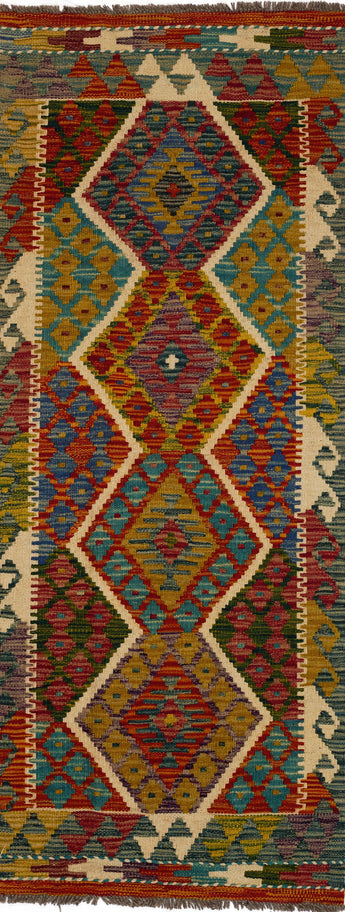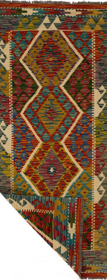 A Masterpiece of Afghan Craftsmanship with Caucasian Inspiration. Kelim Chobi rugs are a brilliant e x ample of traditional Afghan craftsmanship, combining both quality and aesthetic finesse. These rugs are uniquely handwoven in Afghanistan and carry a rich history of craftsmanship, where traditional techniques have been passed down through generations. What makes Kelim Chobi rugs particularly remarkable is their distinct design, heavily influenced by Caucasian patterns. The geometric shapes and symmetrical patterns, typical of Caucasian rugs, give Kelim Chobi rugs their unique and timeless character. The colors used in Kelim Chobi rugs are often subdued and natural, providing them with an elegant and sophisticated look. These colors are derived from natural dyes, which not only provide a durable and authentic color palette but also reflect a deep respect for nature and traditional methods. Each Kelim Chobi rug is handwoven with the utmost care and precision, ensuring high quality and durability. The rugs are flat-woven, giving them a smooth surface and making them both practical and easy to maintain. Thanks to their combination of Afghan craftsmanship and Caucasian design, Kelim Chobi rugs are a popular choice for those looking for a beautiful and timeless decorative element that can enhance any room. These rugs are not only practical floor coverings but also artworks that tell a story of tradition and culture. If you are looking for a rug that combines traditional craftsmanship with stylish design, Kelim Chobi rugs are an e x cellent choice. Their timeless beauty and durable quality make them a perfect investment for your home.