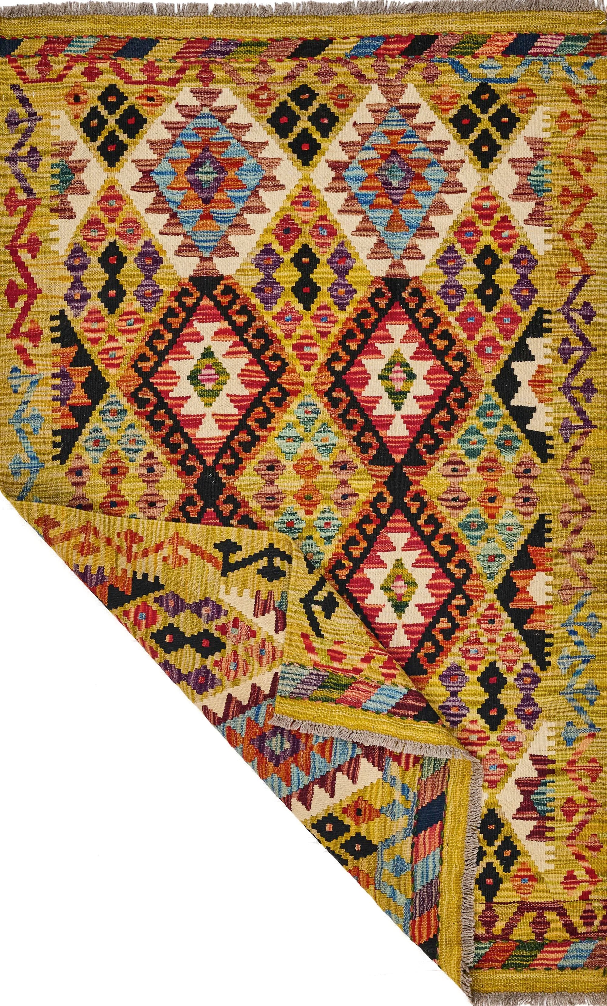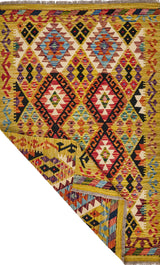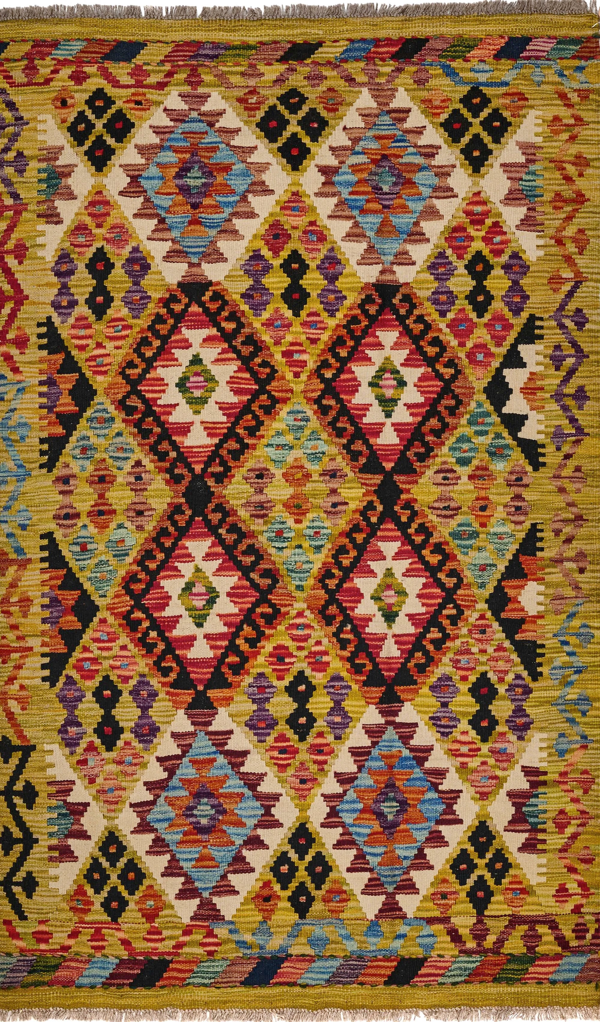 A Masterpiece of Afghan Craftsmanship with Caucasian Inspiration. Kelim Chobi rugs are a brilliant e x ample of traditional Afghan craftsmanship, combining both quality and aesthetic finesse. These rugs are uniquely handwoven in Afghanistan and carry a rich history of craftsmanship, where traditional techniques have been passed down through generations. What makes Kelim Chobi rugs particularly remarkable is their distinct design, heavily influenced by Caucasian patterns. The geometric shapes and symmetrical patterns, typical of Caucasian rugs, give Kelim Chobi rugs their unique and timeless character. The colors used in Kelim Chobi rugs are often subdued and natural, providing them with an elegant and sophisticated look. These colors are derived from natural dyes, which not only provide a durable and authentic color palette but also reflect a deep respect for nature and traditional methods. Each Kelim Chobi rug is handwoven with the utmost care and precision, ensuring high quality and durability. The rugs are flat-woven, giving them a smooth surface and making them both practical and easy to maintain. Thanks to their combination of Afghan craftsmanship and Caucasian design, Kelim Chobi rugs are a popular choice for those looking for a beautiful and timeless decorative element that can enhance any room. These rugs are not only practical floor coverings but also artworks that tell a story of tradition and culture. If you are looking for a rug that combines traditional craftsmanship with stylish design, Kelim Chobi rugs are an e x cellent choice. Their timeless beauty and durable quality make them a perfect investment for your home.