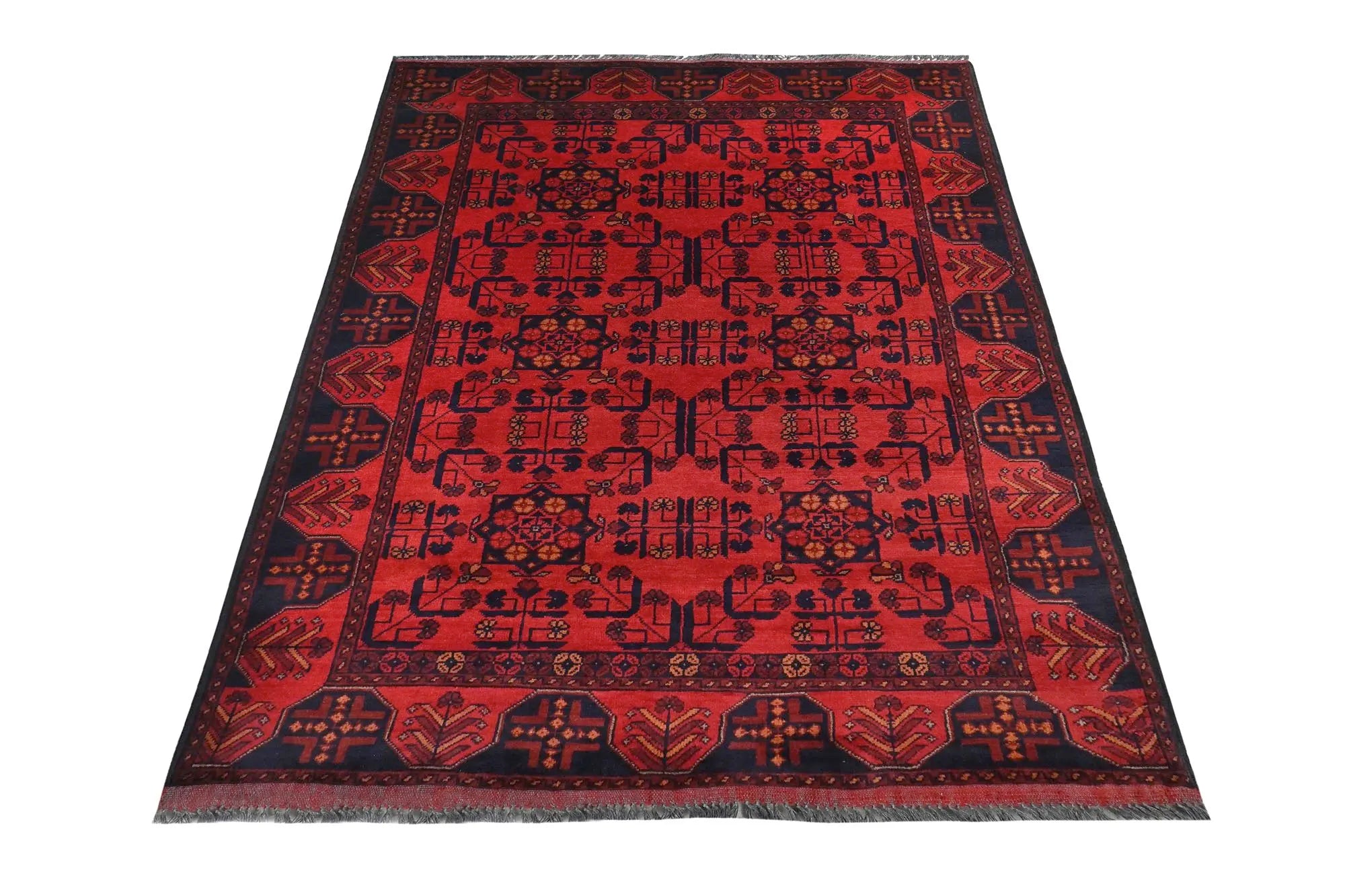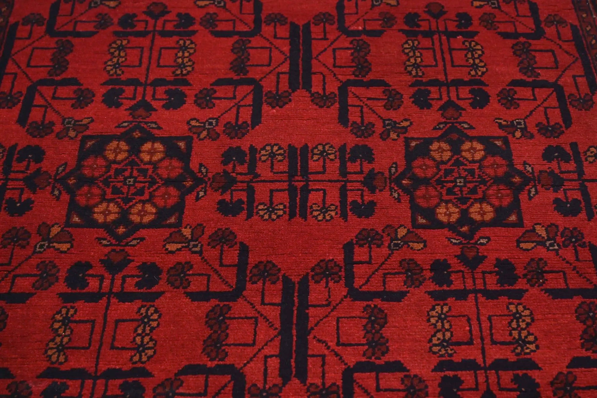 Traditional Afghan rugs are known for their rich history and skilled craftsmanship. These rugs have a long tradition that spans centuries and form an integral part of Afghanistan's cultural heritage. Traditional Afghan rugs are often characterized by geometric patterns and bold colors, and are usually handmade by local artists using traditional methods and materials. The wool used is typically of high quality, which gives the rugs a unique feel and durability. The patterns on these rugs can vary depending on the region and ethnic group that produces them. For e x ample, you might find rugs from different parts of Afghanistan, such as Herat, Kabul, Mazar-i-Sharif, and each region may have its own distinctive styles and patterns. Although traditional Afghan rugs are often woven to be used as floor coverings, they have also become popular as decorative elements in homes and offices around the world thanks to their beauty and distinctive appearance.