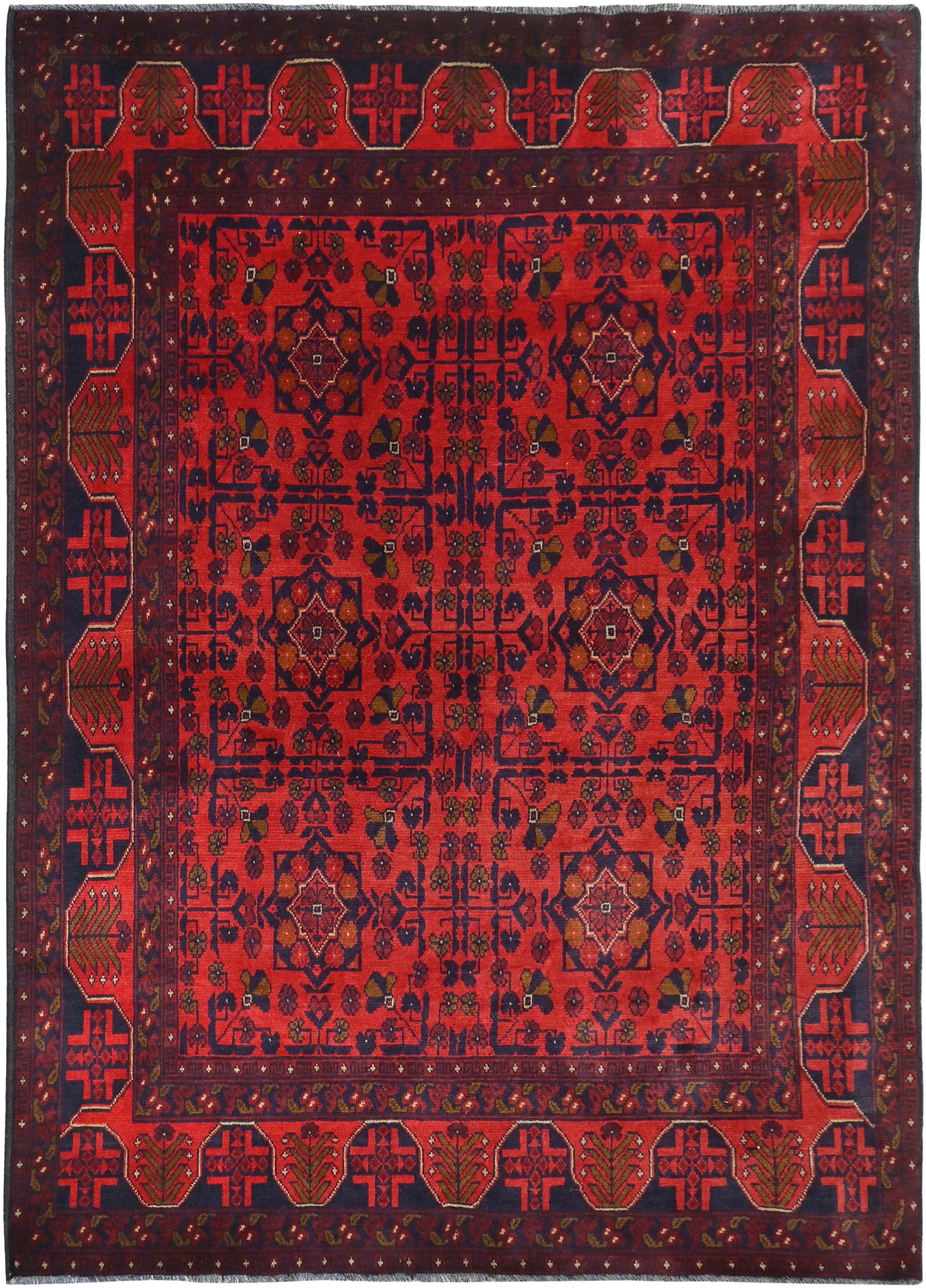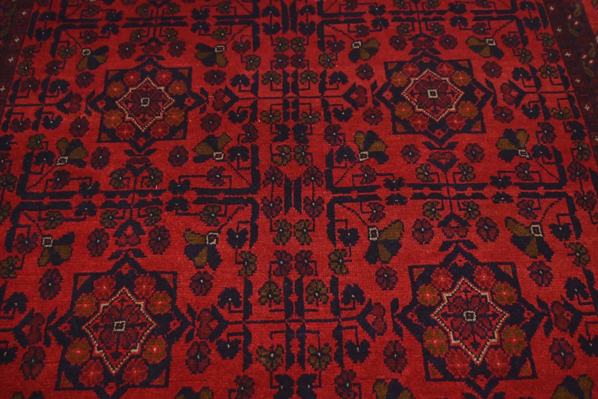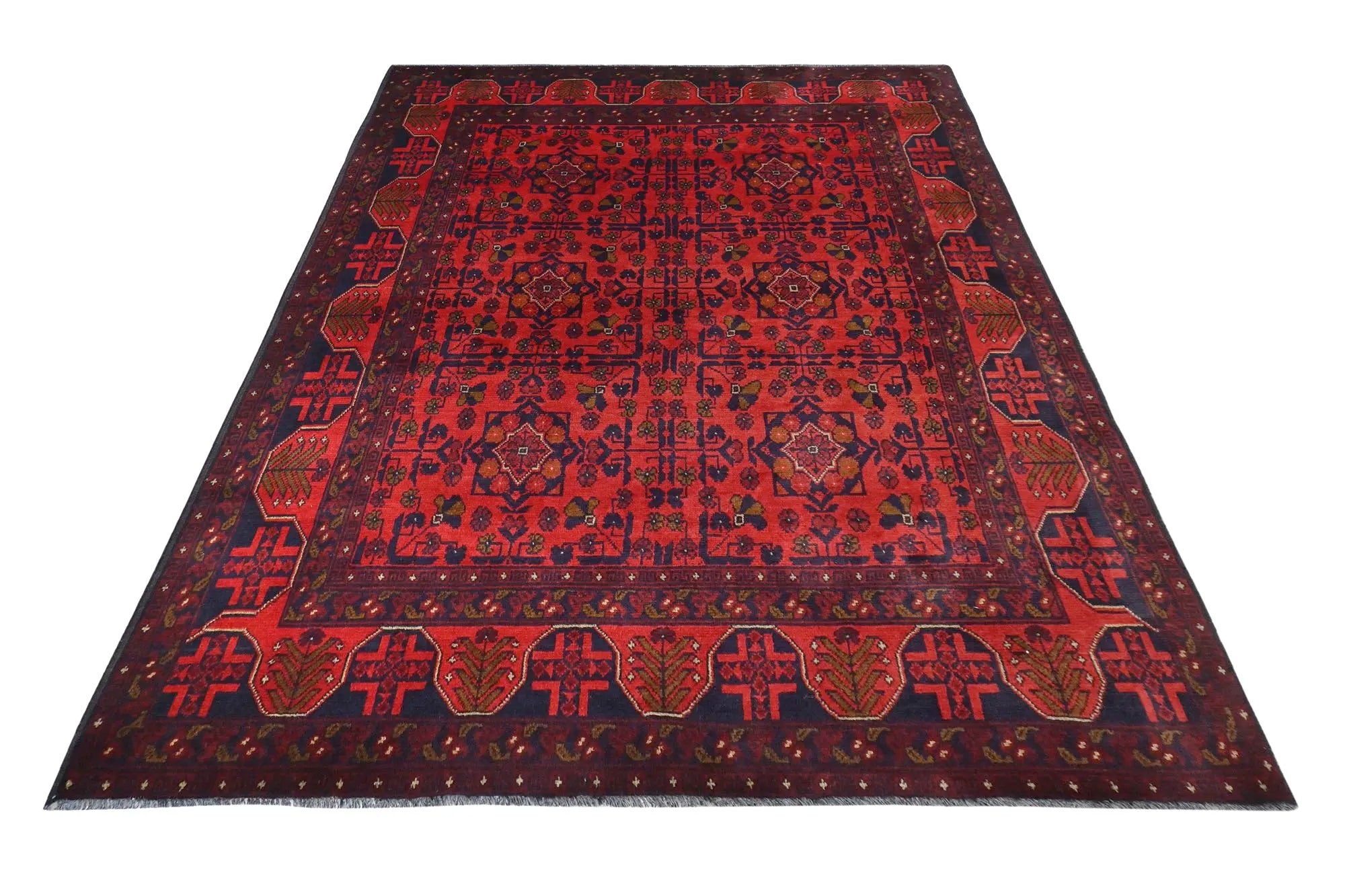 Traditional Afghan rugs are known for their rich history and skilled craftsmanship. These rugs have a long tradition that spans centuries and form an integral part of Afghanistan's cultural heritage. Traditional Afghan rugs are often characterized by geometric patterns and bold colors, and are usually handmade by local artists using traditional methods and materials. The wool used is typically of high quality, which gives the rugs a unique feel and durability. The patterns on these rugs can vary depending on the region and ethnic group that produces them. For e x ample, you might find rugs from different parts of Afghanistan, such as Herat, Kabul, Mazar-i-Sharif, and each region may have its own distinctive styles and patterns. Although traditional Afghan rugs are often woven to be used as floor coverings, they have also become popular as decorative elements in homes and offices around the world thanks to their beauty and distinctive appearance.