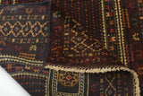 Baluchmattor kommer från områden som bebos av baluchfolket, främst i östra Iran, västra Afghanistan och sydvästra Pakistan. Baluch är kända för sin nomadiska livsstil, och deras mattor speglar denna kulturella och geografiska mångfald. Baluchmattor har ofta intrikata geometriska mönster och ibland stiliserade motiv som representerar naturen, som blommor och djur. Vanliga mönster inkluderar guls och oktagoner. Typiska färger inkluderar djupröd, blå och brun, ofta kombinerad med vita och svarta accenter för att skapa kontrast. Dessa mattor är vanligtvis handvävda med ull på bomullsbotten, vilket ger dem både hållbarhet och mjukhet. Ull är det vanligaste materialet som används, men ibland används även gethår eller siden. Traditionellt vävs dessa mattor för hand på horisontella eller vertikala vävstolar, en process som kan ta flera månader beroende på mattans storlek och komplexitet. Baluchmattor användes främst som golvbeläggning i nomadtält, men idag används de även som dekorativa väggbonader och ibland som bönemattor. Många av mönstren och färgerna har symboliska betydelser, som skyddande amuletter eller symboler för välstånd och fertilitet. Baluchmattor är inte bara praktiska föremål utan också konstverk som berättar en rik historia om människorna och kulturerna som skapade dem.