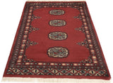 Bokhara-mattor från Pakistan är kända för sina eleganta och klassiska mönster, inspirerade av traditionell centralasiatisk design. De är uppkallade efter staden Bokhara (nu Bukhara) i Uzbekistan, även om de som tillverkas i Pakistan har utvecklat sin egen unika stil och känsla. Bokhara-mattor från Pakistan tillverkas främst i Punjab-provinsen och andra delar av landet. Pakistan är känt för sin rika tradition av mattvävning och har blivit en av de ledande exportörerna av handknutna mattor. Designen av Bokhara-mattor kommer från den turkmenska nomadstammen Tekke, men pakistanska versioner har anpassat och utvecklat dessa mönster för att skapa sin egen distinkta stil. Denna anpassning har lett till en unik och erkänd variant av Bokhara-mattor. Bokhara-mattor kännetecknas av sina typiska geometriska mönster med upprepade oktagoner eller guls, omgivna av mindre geometriska element. Det finns även varianter med mer blommiga eller stiliserade mönster. Traditionella Bokhara-mattor är ofta i djupröd, vinröd eller mörkblå, men moderna varianter kan också hittas i ljusare och mer varierande färger som beige, grått och grönt. Bokhara-mattor från Pakistan är oftast gjorda av fin ull som är mjuk och hållbar. De kan också ha inslag av siden för att förbättra glansen och mjukheten. Varpen och väften är vanligtvis gjorda av bomull, vilket ger stabilitet och struktur. Dessa mattor är handknutna med medel till hög knuttäthet, vilket ger dem en tät och hållbar konstruktion. Knyttekniken i Pakistan är känd för sin precision och kvalitet. Dessa mattor är mycket mångsidiga och kan användas i olika miljöer, från traditionella till moderna. De är också populära som konstföremål på grund av deras estetiska och konstnärliga värde.