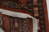 Bokhara-mattor från Pakistan är kända för sina eleganta och klassiska mönster, inspirerade av traditionell centralasiatisk design. De är uppkallade efter staden Bokhara (nu Bukhara) i Uzbekistan, även om de som tillverkas i Pakistan har utvecklat sin egen unika stil och känsla. Bokhara-mattor från Pakistan tillverkas främst i Punjab-provinsen och andra delar av landet. Pakistan är känt för sin rika tradition av mattvävning och har blivit en av de ledande exportörerna av handknutna mattor. Designen av Bokhara-mattor kommer från den turkmenska nomadstammen Tekke, men pakistanska versioner har anpassat och utvecklat dessa mönster för att skapa sin egen distinkta stil. Denna anpassning har lett till en unik och erkänd variant av Bokhara-mattor. Bokhara-mattor kännetecknas av sina typiska geometriska mönster med upprepade oktagoner eller guls, omgivna av mindre geometriska element. Det finns även varianter med mer blommiga eller stiliserade mönster. Traditionella Bokhara-mattor är ofta i djupröd, vinröd eller mörkblå, men moderna varianter kan också hittas i ljusare och mer varierande färger som beige, grått och grönt. Bokhara-mattor från Pakistan är oftast gjorda av fin ull som är mjuk och hållbar. De kan också ha inslag av siden för att förbättra glansen och mjukheten. Varpen och väften är vanligtvis gjorda av bomull, vilket ger stabilitet och struktur. Dessa mattor är handknutna med medel till hög knuttäthet, vilket ger dem en tät och hållbar konstruktion. Knyttekniken i Pakistan är känd för sin precision och kvalitet. Dessa mattor är mycket mångsidiga och kan användas i olika miljöer, från traditionella till moderna. De är också populära som konstföremål på grund av deras estetiska och konstnärliga värde.