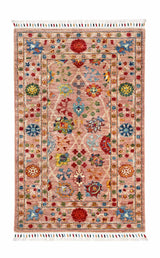 Ghazni-mattor är välkända för sin höga kvalitet och är uppkallade efter Ghazni-regionen i Afghanistan, som är känd för sin överlägsna ull. Denna ull kallas ofta för Ghazni-ull och är uppskattad för sin hållbarhet och fina struktur, vilket gör den till ett utmärkt material för matttillverkning. Ghazni-mattor har vanligtvis intrikata stammönster som är djupt rotade i regionens kulturella traditioner. Designen innehåller ofta geometriska mönster, blommotiv och mycket detaljerade bårder. Färgpaletten består vanligtvis av rika, djupa färger som mörkröda, blåa och jordnära toner, som härrör från naturliga färgämnen. Dessa mattor är vanligtvis handknutna, en process som kräver en hög grad av skicklighet och tid, vilket bidrar till deras hållbarhet och intrikata designdetaljer. Den höga knuttätheten i Ghazni-mattor gör dem särskilt hållbara, lämpliga för högtrafikerade områden. Ghazni-mattor uppskattas över hela världen för sitt hantverk och sitt estetiska tilltal, ofta ses som både funktionella konstverk och värdefulla kultursymboler som speglar det rika arvet från afghansk mattvävning.
