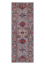 Kazakmattor från Afghanistan är välkända och uppskattade för sin rika historia, unika design och höga kvalitet. De är en del av Afghanistans rika textila tradition och har en speciell plats i hjärtat av mattantusiaster världen över. Kazakmattor (eller Qazak) har sitt ursprung i Kaukasusregionen, men de är också populära och tillverkade i Afghanistan. Ursprungligen från Kaukasusregionerna har de påverkat och blivit en betydande del av mattvävstraditionen i Afghanistan. Dessa mattor har en lång historia som sträcker sig över århundraden. Traditionellt tillverkade av nomadstammar och bysamhällen, bär de på ett rikt kulturarv och unika historier. Kazakmattor är kända för sina geometriska mönster och djärva design, ofta med stora medaljonger i mitten, upprepade mindre geometriska former och ibland stiliserade blommor och djur. Mönstren kan variera från enkla till mycket komplexa och detaljerade. Typiska färger inkluderar djupröda, blåa och gröna, ofta kombinerade med vita och guldiga accenter. Många av mönstren och symbolerna på mattor från Kazak har traditionella och kulturella betydelser, ofta relaterade till skydd, styrka och tur. Tack vare den täta knuten och högkvalitativa ullen är Kazak-mattor extremt hållbara och kan hålla i många år, även vid hård användning. De är idealiska för användning i olika rum, från vardagsrum till sovrum, och kan även användas som väggbonader. Deras tidlösa design gör dem lämpliga för både traditionella och moderna interiörer.