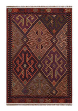 Somak Kelim är en typ av handvävd matta med ursprung i Persien. Denna typ av matta är känd för sin speciella teknik och unika estetik. Somak Kelim är en form av plattvävd matta skapad genom att väva varp- och inslagstrådar tillsammans. Denna teknik resulterar i en tunn, slät och flexibel matta som är stark och hållbar. Till skillnad från andra typer av mattor, där varptrådarna klipps efter varje rad med knutna trådar, syns varptrådarna i Somak Kelim på mattans baksida. Typiska mönster på Somak Kelim inkluderar geometriska former, blommor, vinstockar och andra abstrakta mönster. Färgpaletten kan variera från traditionella jordnära toner till ljusa och levande färger, beroende på region och tillverkare. Det finns ofta en balans mellan negativa och positiva utrymmen i mönstret, vilket ger mattan visuell komplexitet och dynamik. Somak Kelim-mattor har en distinkt orientalisk stil som passar både traditionella och moderna interiörer. Deras släta yta och tunna struktur gör dem idealiska att använda som golvbeläggningar eller väggdekorationer. Dessa mattor är kända för sin mångsidighet och kan användas i olika miljöer, inklusive vardagsrum, sovrum och matsalar. Somak Kelim-mattor är populära både i Iran och internationellt på grund av deras skickliga hantverk, unika teknik och estetiska värde. De är ofta eftertraktade som samlarobjekt och konstverk på grund av sin kulturella betydelse och historiska traditioner.