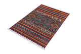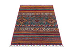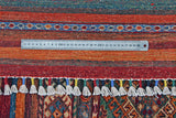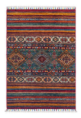 Khorjin-mattor från Afghanistan är en typ av traditionell textil som ofta används som väskor eller sadelväskor av nomadstammar i regionen. Dessa mattor är kända för sina praktiska användningsområden och vackra mönster. Ursprungligen skapade för att användas som packväskor av nomader, Khorjin-mattor är ofta designade med funktionalitet i åtanke. Mönstren på Khorjin-mattor är ofta geometriska och färgglada, med symboliska motiv som representerar stammens kultur och traditioner. Vanliga motiv inkluderar diamanter, romber och andra geometriska former, ofta i en rik färgpalett. Khorjin-mattor är vanligtvis vävda av ull, vilket gör dem hållbara och tuffa nog för nomadlivet. Färgerna i Khorjin-mattor är vanligtvis naturliga, tillverkade av växtfärger, vilket ger dem en varm och jordnära färgpalett. Typiska färger inkluderar rött, blått, brunt och beige, men det kan också finnas inslag av grönt och gult. Khorjin-mattor är inte bara praktiska, utan de är också konstverk som berättar historier om stammens liv och kultur. Varje matta är unik och speglar vävarens skicklighet och kreativitet. Högkvalitativa material och hantverk gör Khorjin-mattor till långvariga och värdefulla investeringar för kunderna.