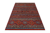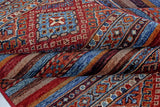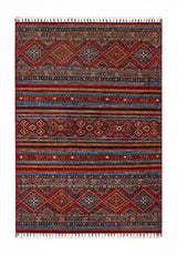 Khorjin-mattor från Afghanistan är en typ av traditionell textil som ofta används som väskor eller sadelväskor av nomadstammar i regionen. Dessa mattor är kända för sina praktiska användningsområden och vackra mönster. Ursprungligen skapade för att användas som packväskor av nomader, Khorjin-mattor är ofta designade med funktionalitet i åtanke. Mönstren på Khorjin-mattor är ofta geometriska och färgglada, med symboliska motiv som representerar stammens kultur och traditioner. Vanliga motiv inkluderar diamanter, romber och andra geometriska former, ofta i en rik färgpalett. Khorjin-mattor är vanligtvis vävda av ull, vilket gör dem hållbara och tuffa nog för nomadlivet. Färgerna i Khorjin-mattor är vanligtvis naturliga, tillverkade av växtfärger, vilket ger dem en varm och jordnära färgpalett. Typiska färger inkluderar rött, blått, brunt och beige, men det kan också finnas inslag av grönt och gult. Khorjin-mattor är inte bara praktiska, utan de är också konstverk som berättar historier om stammens liv och kultur. Varje matta är unik och speglar vävarens skicklighet och kreativitet. Högkvalitativa material och hantverk gör Khorjin-mattor till långvariga och värdefulla investeringar för kunderna.