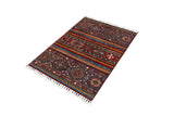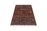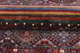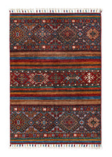 Khorjin-mattor från Afghanistan är en typ av traditionell textil som ofta används som väskor eller sadelväskor av nomadstammar i regionen. Dessa mattor är kända för sina praktiska användningsområden och vackra mönster. Ursprungligen skapade för att användas som packväskor av nomader, Khorjin-mattor är ofta designade med funktionalitet i åtanke. Mönstren på Khorjin-mattor är ofta geometriska och färgglada, med symboliska motiv som representerar stammens kultur och traditioner. Vanliga motiv inkluderar diamanter, romber och andra geometriska former, ofta i en rik färgpalett. Khorjin-mattor är vanligtvis vävda av ull, vilket gör dem hållbara och tuffa nog för nomadlivet. Färgerna i Khorjin-mattor är vanligtvis naturliga, tillverkade av växtfärger, vilket ger dem en varm och jordnära färgpalett. Typiska färger inkluderar rött, blått, brunt och beige, men det kan också finnas inslag av grönt och gult. Khorjin-mattor är inte bara praktiska, utan de är också konstverk som berättar historier om stammens liv och kultur. Varje matta är unik och speglar vävarens skicklighet och kreativitet. Högkvalitativa material och hantverk gör Khorjin-mattor till långvariga och värdefulla investeringar för kunderna.