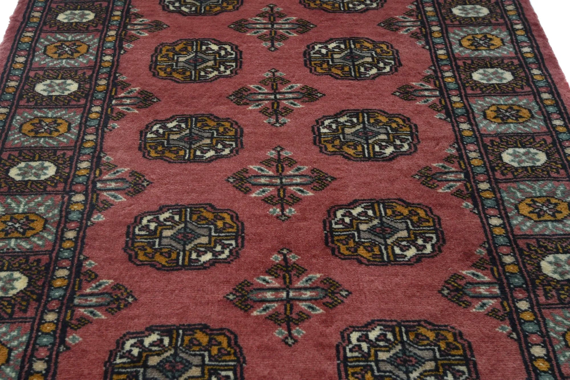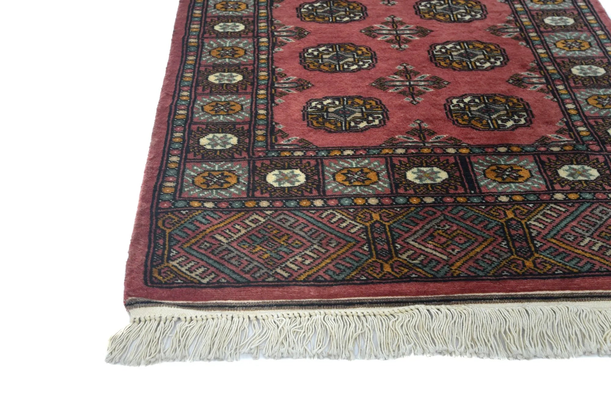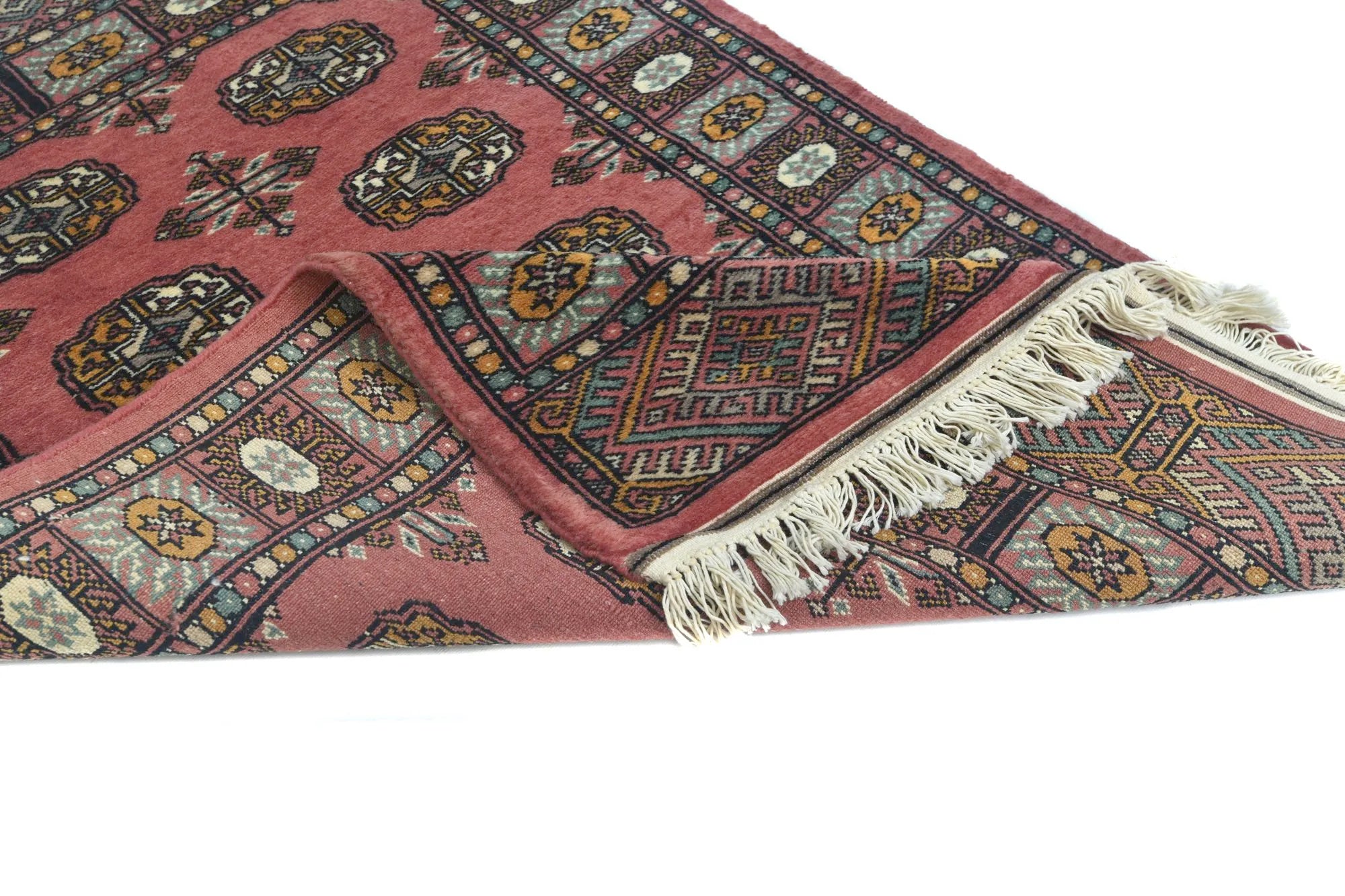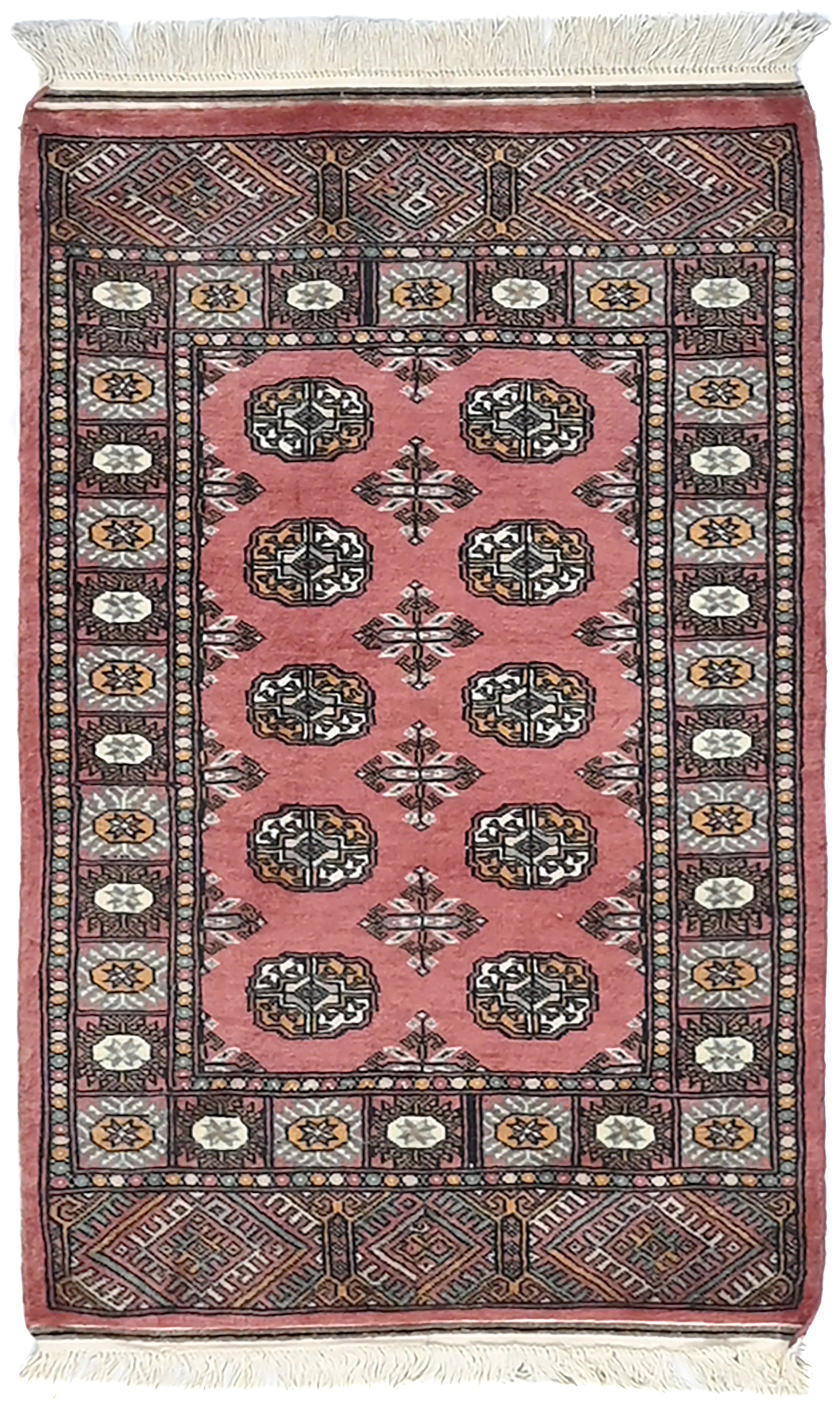 Bokhara carpets from Pakistan are known for their elegant and classic patterns, inspired by traditional Central Asian design. They are named after the city of Bokhara (now Bukhara) in Uzbekistan, although those manufactured in Pakistan have developed their own unique style and feel. Bokhara carpets from Pakistan are primarily produced in the Punjab province and other parts of the country. Pakistan is known for its rich tradition of carpet weaving and has become one of the leading e x porters of hand-knotted carpets. The design of Bokhara carpets originates from the Turkmen nomadic tribe Tekke, but Pakistani versions have adapted and developed these patterns to create their own distinct style. This adaptation has led to a unique and recognized variant of Bokhara carpets. Bokhara carpets are characterized by their typical geometric patterns with repeated octagons or guls, surrounded by smaller geometric elements. There are also variations with more floral or stylized patterns. Traditional Bokhara carpets are often in deep red, wine red, or dark blue, but modern variants may also be found in lighter and more varied colors such as beige, gray, and green. Bokhara carpets from Pakistan are usually made of fine wool which is soft and durable. They may also have elements of silk to enhance the gloss and softness. The warp and weft are usually made of cotton, which provides stability and structure. These carpets are hand-knotted with a medium to high knot density, which gives them a dense and durable construction. The knotting technique in Pakistan is known for its precision and quality. These carpets are very versatile and can be used in various environments, from traditional to modern. They are also popular as art objects due to their aesthetic and artistic value.
