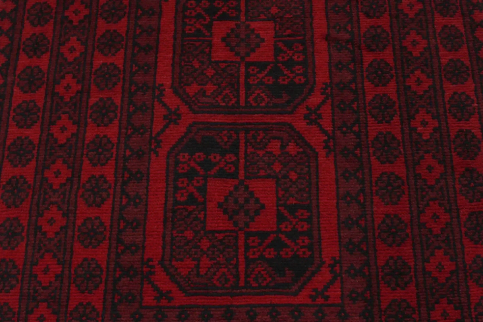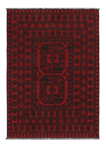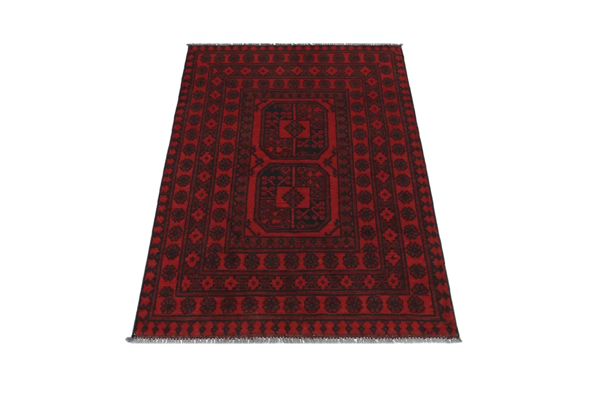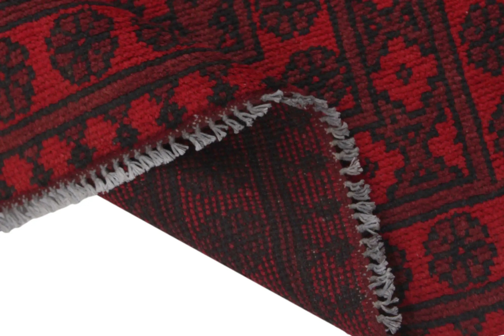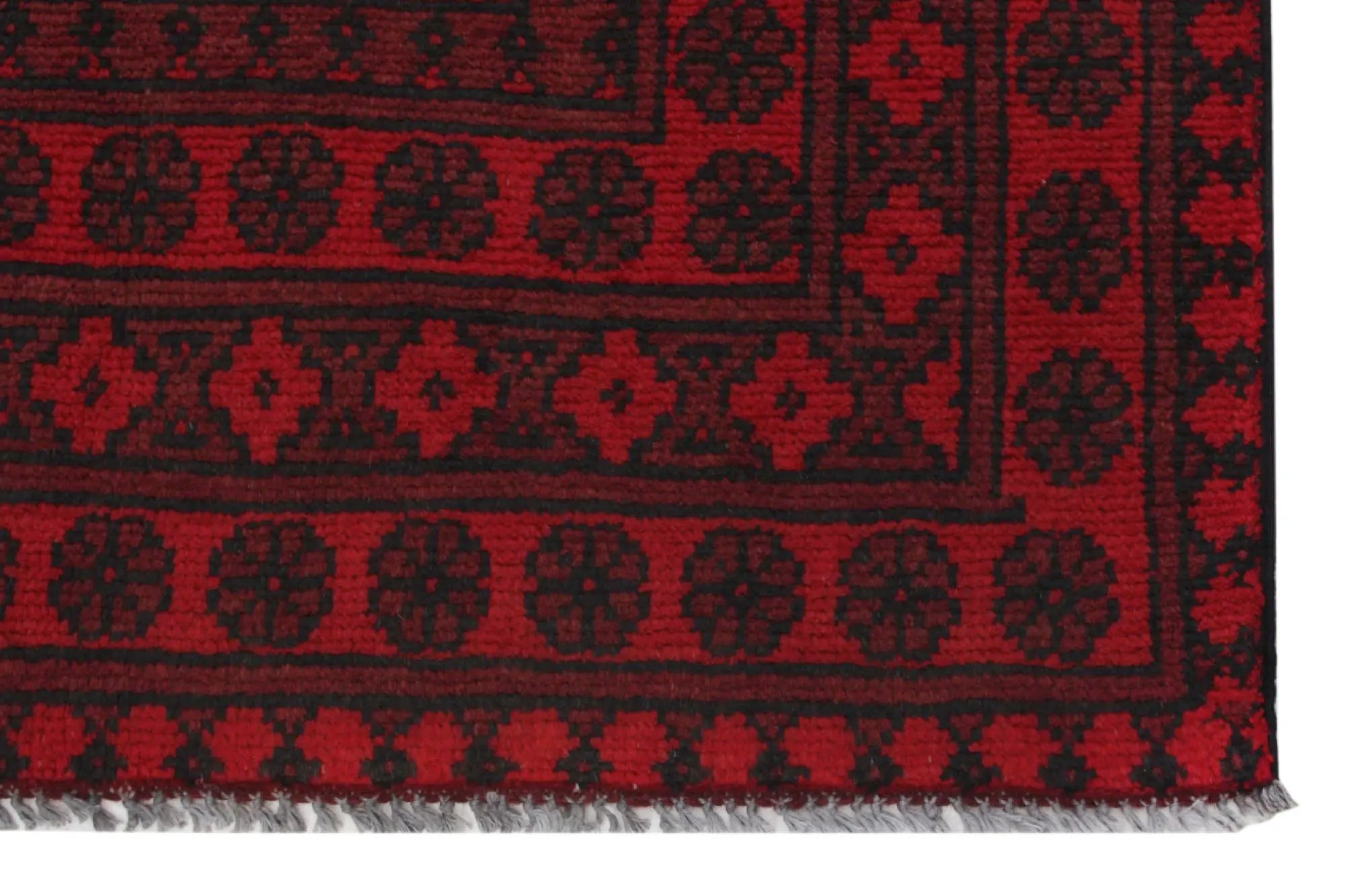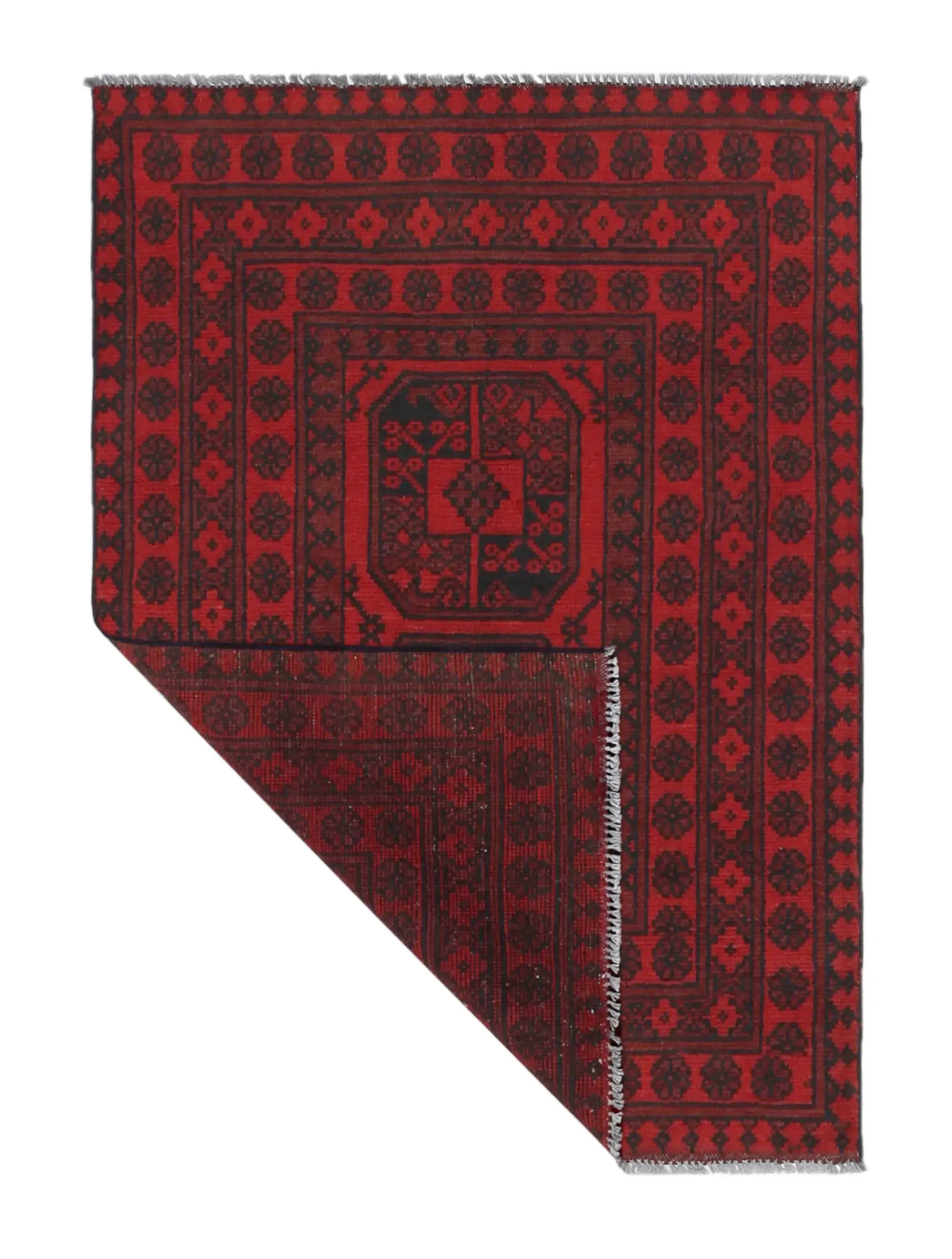 Discover this exquisite hand-knotted Akche rug from Afghanistan, crafted in rich, deep red and black tones that bring warmth and elegance to any interior. Made from 100% pure wool, including the fringes, it contains no synthetic materials, giving it a naturally soft, durable, and authentic feel. The traditional “elephant foot” motif, characteristic of Akche rugs, adds a timeless and culturally rich expression. A perfect choice for anyone seeking a rug that unites craftsmanship, character, and classic oriental beauty.